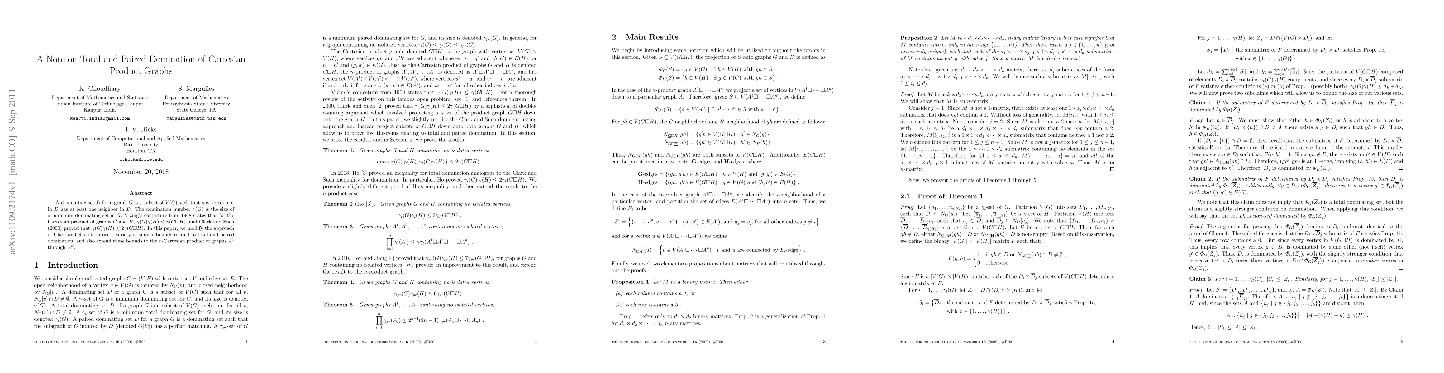 This paper explores bounds for total and paired domination in Cartesian product graphs, improving upon the bounds established by Clark and Suen for domination. It extends these findings to multiple Cartesian products and introduces new results regarding the relationship between domination numbers in the original and product graphs.