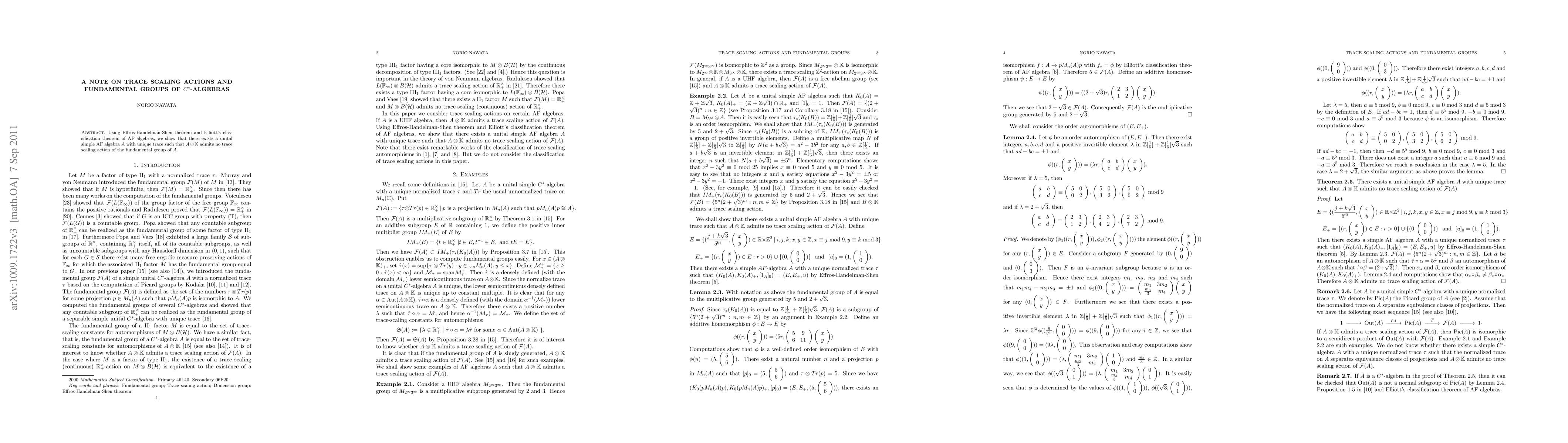 This paper demonstrates the existence of a unital simple AF algebra A with a unique trace, showing that the tensor product $A\otimes \mathbb{K}$ does not support a trace scaling action of the fundamental group of A, using Effros-Handelman-Shen and Elliott's classification theorems.