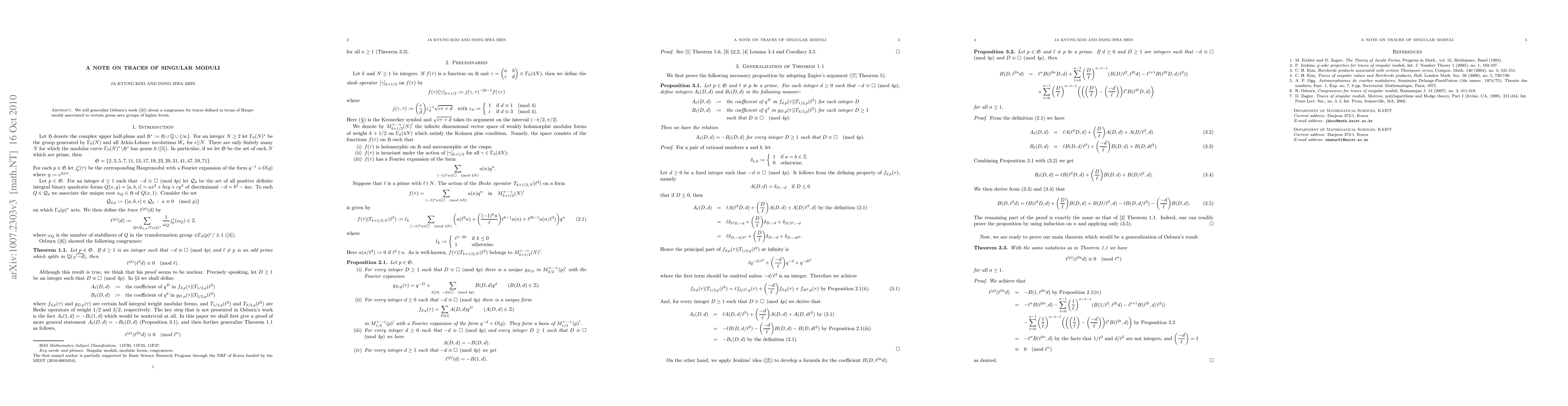We will generalize Osburn's work about a congruence for traces defined in terms of Hauptmodul associated to certain genus zero groups of higher levels.