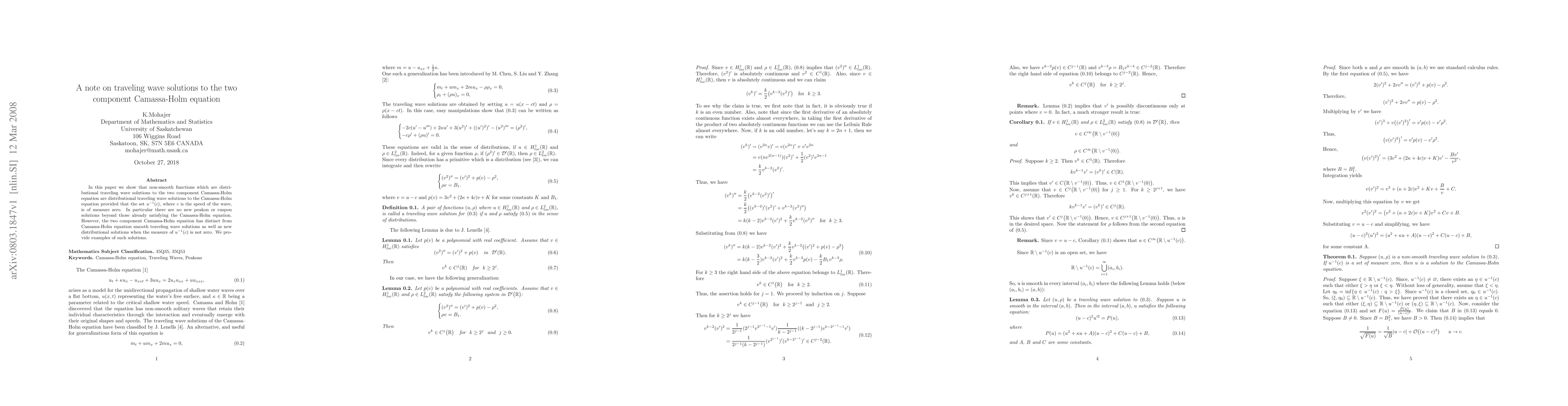 This paper demonstrates that non-smooth traveling wave solutions to the two component Camassa-Holm equation remain valid for the Camassa-Holm equation if the set where the wave speed is reached has measure zero. It also highlights that the two component equation allows for distinct smooth and new distributional traveling wave solutions when this set has non-zero measure.