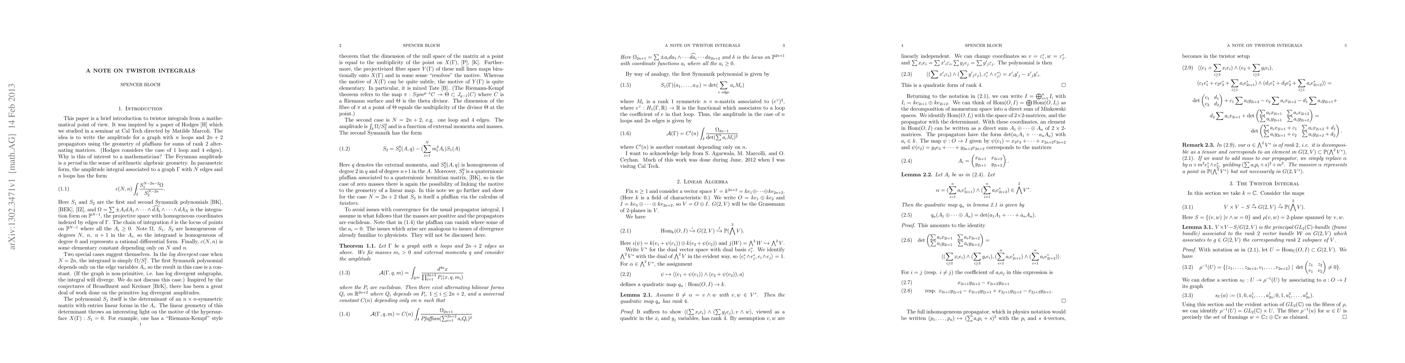 An exposition of the basic geometry of twistor integrals, intended for mathematicians.