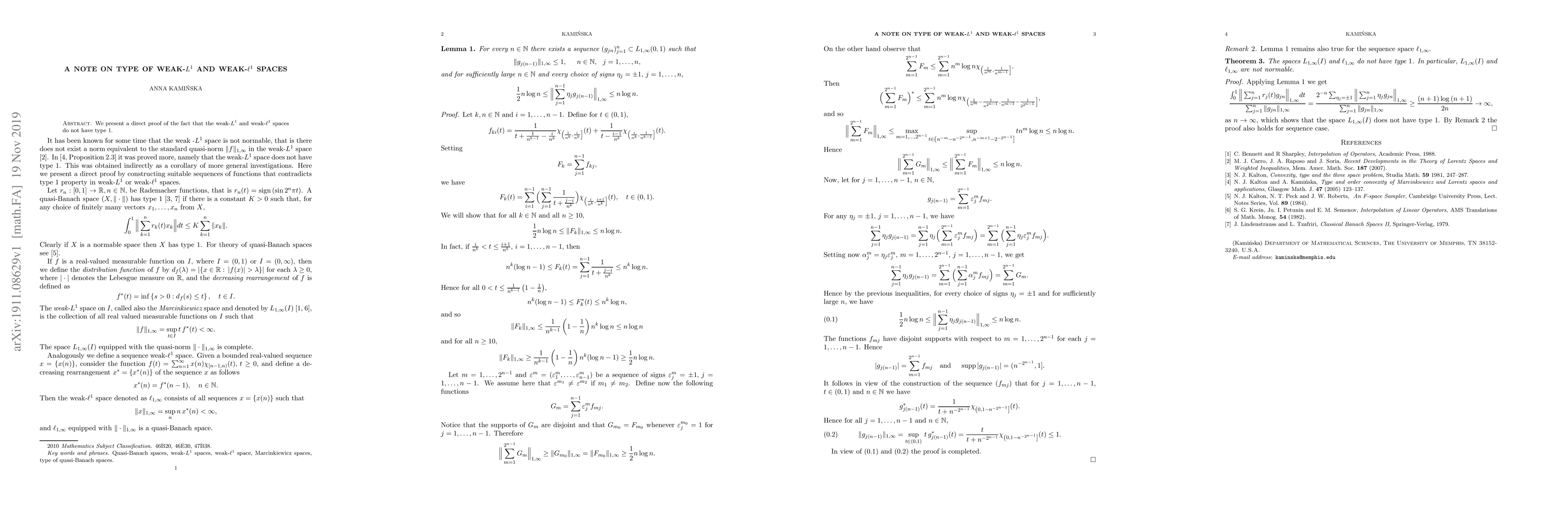 Researchers prove that weak-$L^1$ and weak-$ au^1$ spaces do not have type 1, marking a significant advancement in understanding these mathematical concepts.