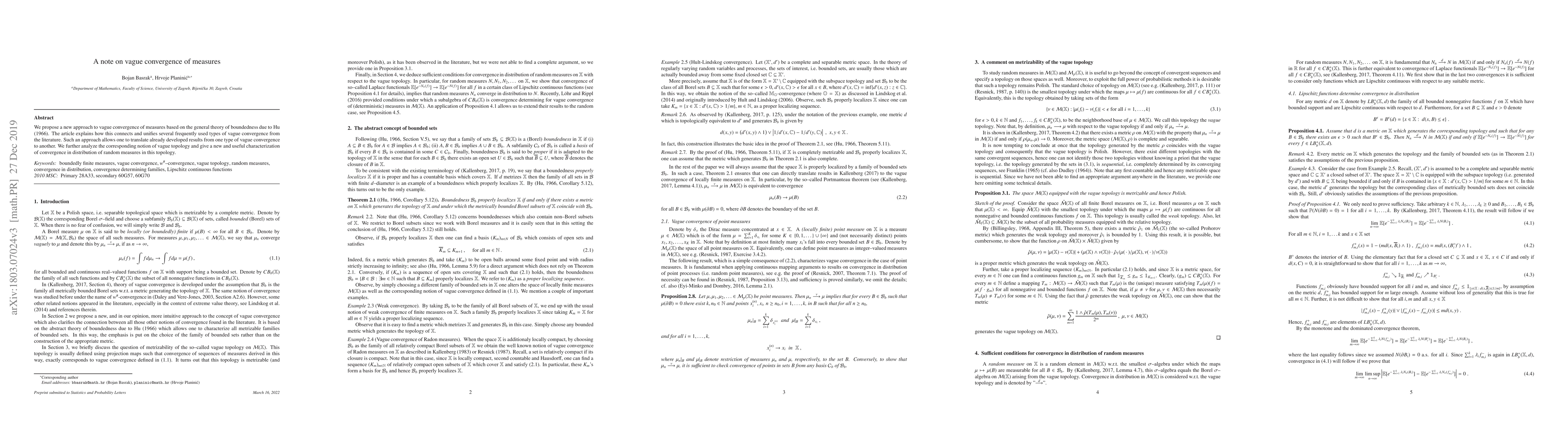 This paper introduces a novel approach to vague convergence of measures using Hu's general theory of boundedness, unifying various types of vague convergence and enabling translation of results between them. It also provides a new characterization of convergence in distribution of random measures in this context.