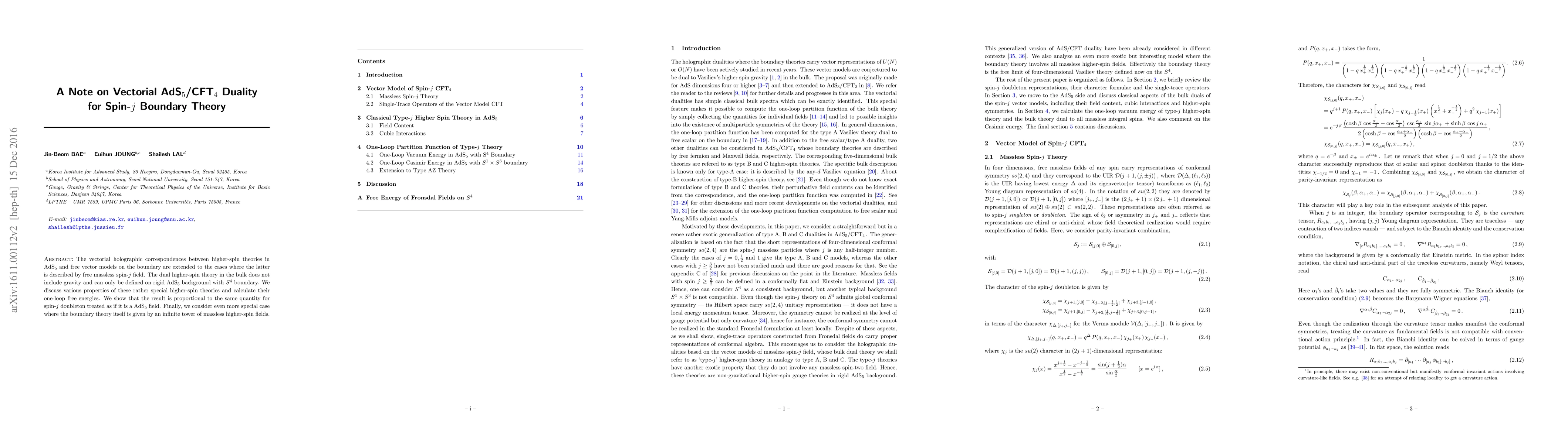 This paper extends the vectorial AdS$_5$/CFT$_4$ duality to free massless spin-$j$ boundary theories, showing that the dual higher-spin theory in AdS$_5$ lacks gravity and is defined on a rigid AdS$_5$ background. The authors calculate the one-loop free energies and find they match those of spin-$j$ doubletons, concluding with a discussion on boundary theories composed of infinite towers of higher-spin fields.