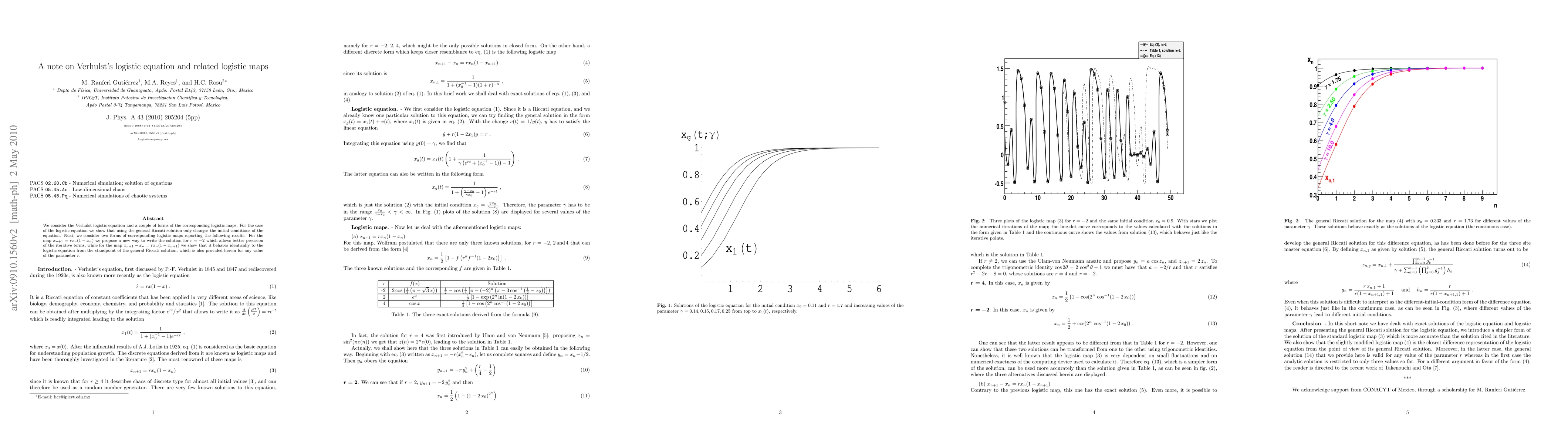 This paper examines the Verhulst logistic equation and its related logistic maps, demonstrating that the general Riccati solution only alters initial conditions. It proposes a new solution method for the logistic map x_{n+1} = rx_n(1 - x_n) when r = -2, enhancing precision, and shows that the map x_{n+1}-x_n = rx_n(1 - x_{n+1}) behaves identically to the logistic equation.