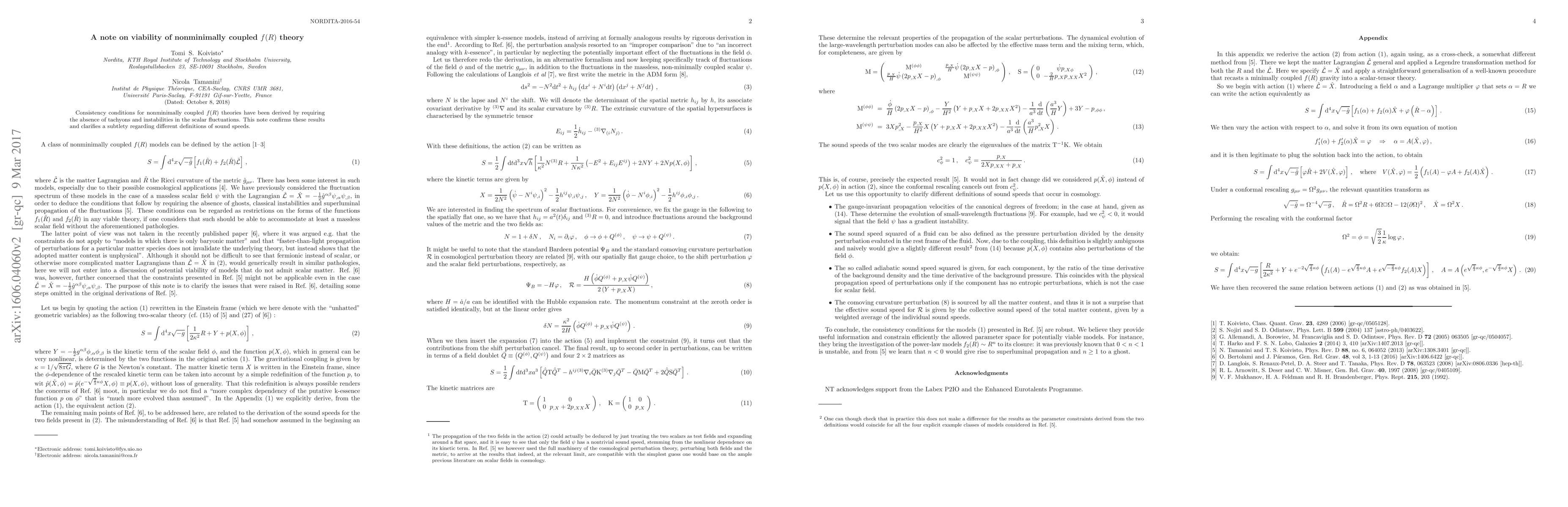 This paper confirms consistency conditions for nonminimally coupled f(R) theories, ensuring no tachyons or instabilities in scalar fluctuations, and clarifies the subtlety around different sound speed definitions.