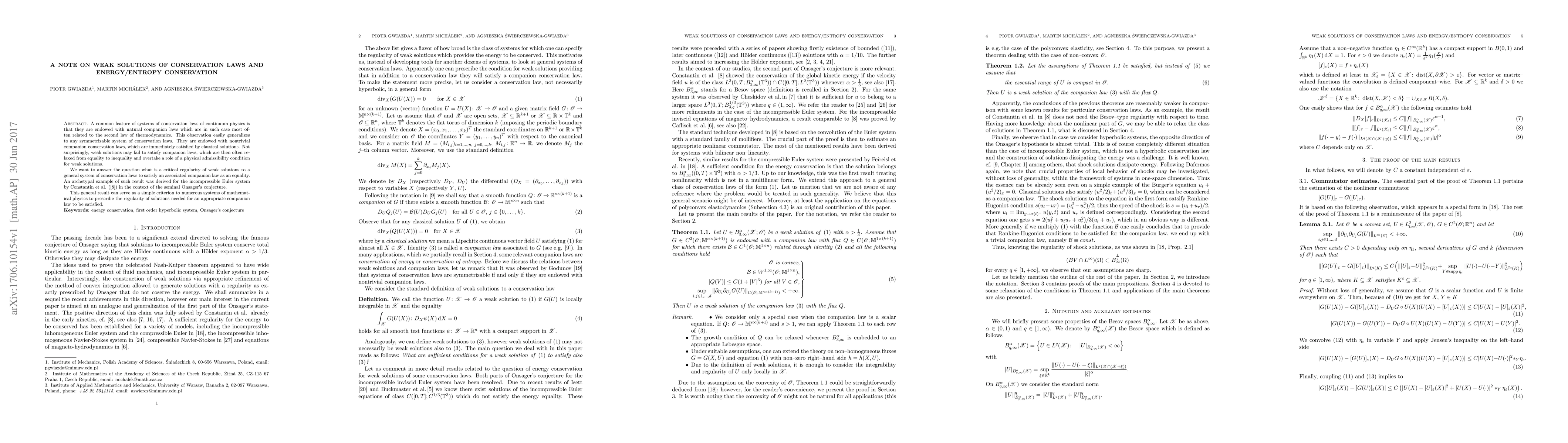 A research paper explores how weak solutions to systems of conservation laws satisfy companion laws related to thermodynamics, providing a regularity criterion for equality satisfaction in non-classical settings.