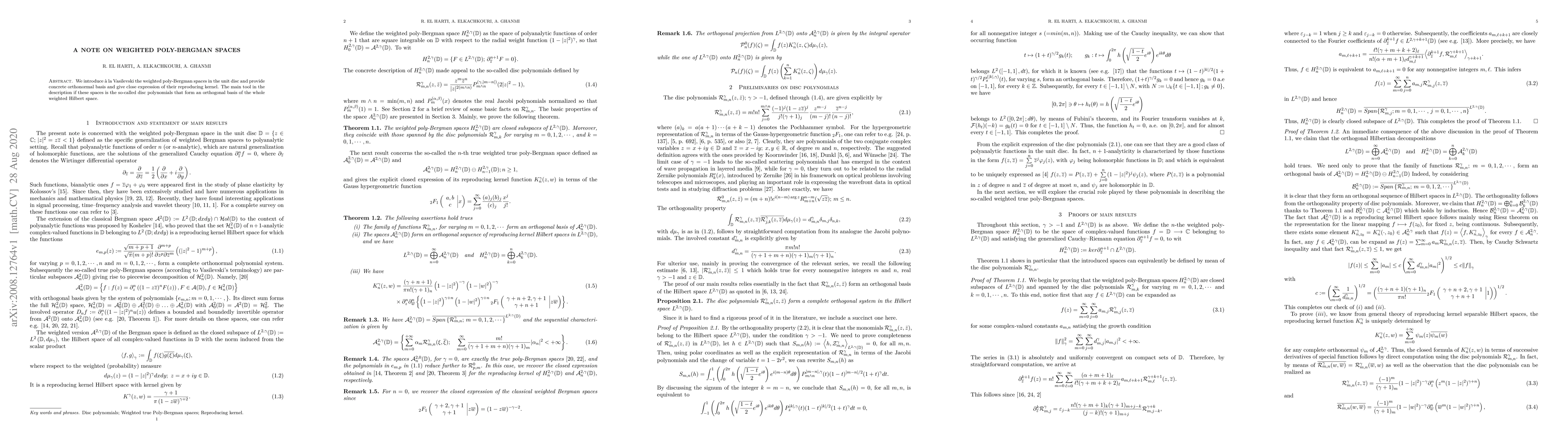 We introduce \`a la Vasilevski the weighted poly-Bergman spaces in the unit disc and provide concrete orthonormal basis and give close expression of their reproducing kernel. The main tool in the description if these spaces is the so-called disc polynomials that form an orthogonal basis of the whole weighted Hilbert space.
