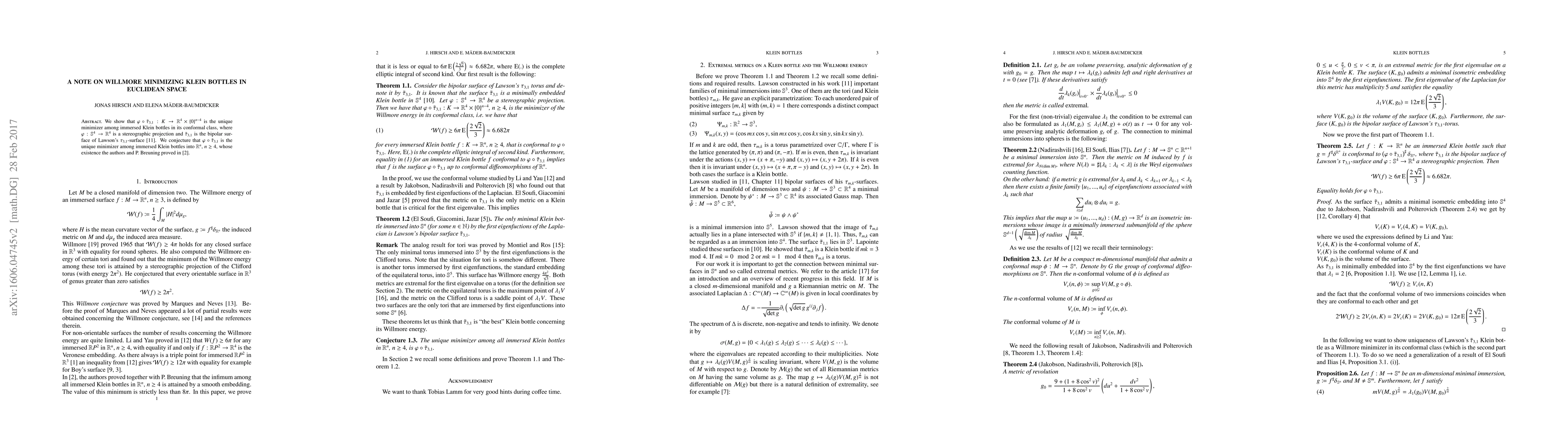 The research made a significant technical contribution by proving the existence of minimising Willmore Klein bottles in Euclidean 4-space.