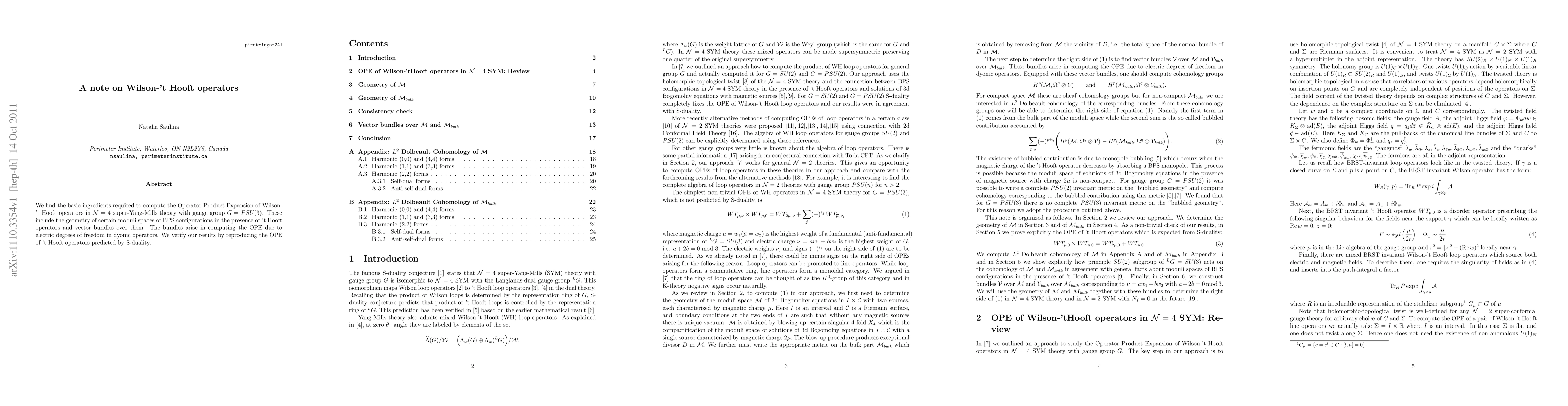 Summary: This study identifies the necessary components for computing the Operator Product Expansion of Wilson-'t Hooft operators in N=4 super-Yang-Mills theory, emphasizing the role of moduli spaces of BPS configurations and vector bundles, and confirms results via S-duality predictions.