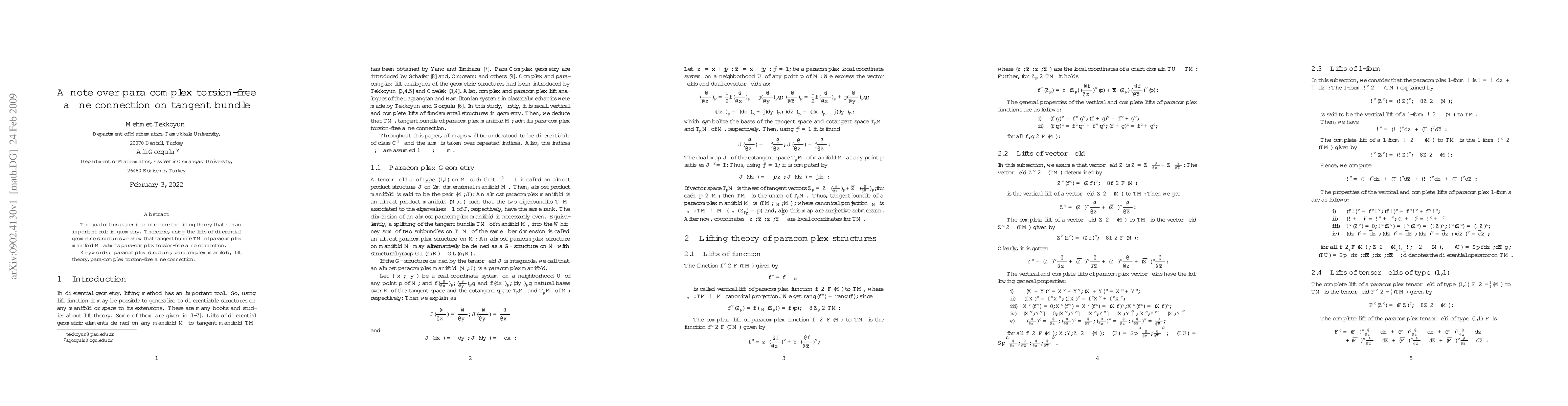 The goal of this paper is to introduce the lifting theory that has an important role in geometry. Therefore, using the lifts of differential geometric structures we show that tangent bundle TM of paracomplex manifold M admits para-complex torsion-free affine connection.