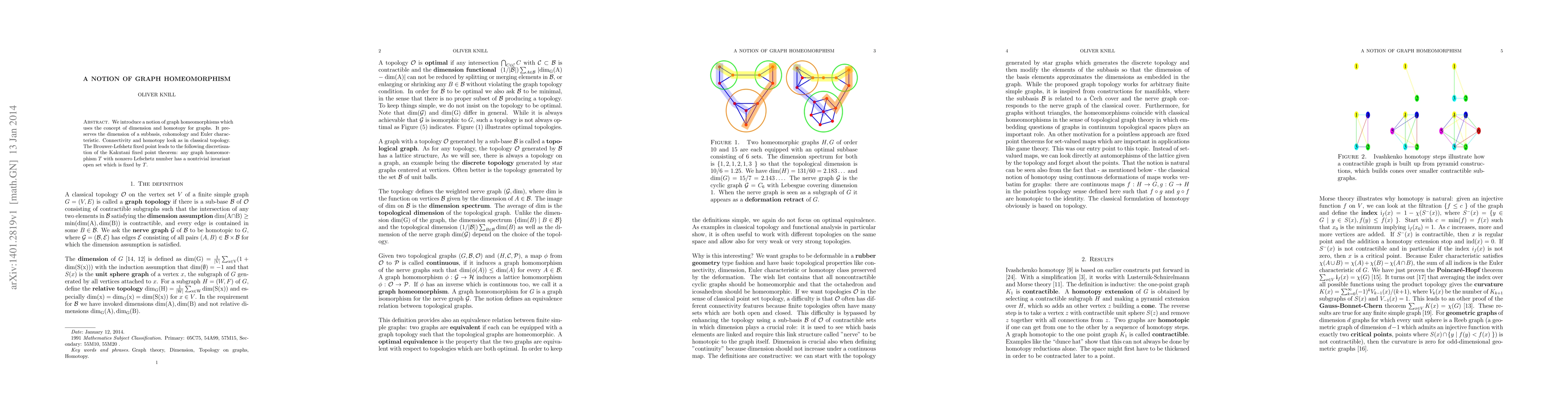 This paper introduces a novel concept of graph homeomorphisms that incorporates dimension, homotopy, and classical topological properties like connectivity. It also establishes a discrete version of the Kakutani fixed point theorem using the Brouwer-Lefschetz fixed point theory.