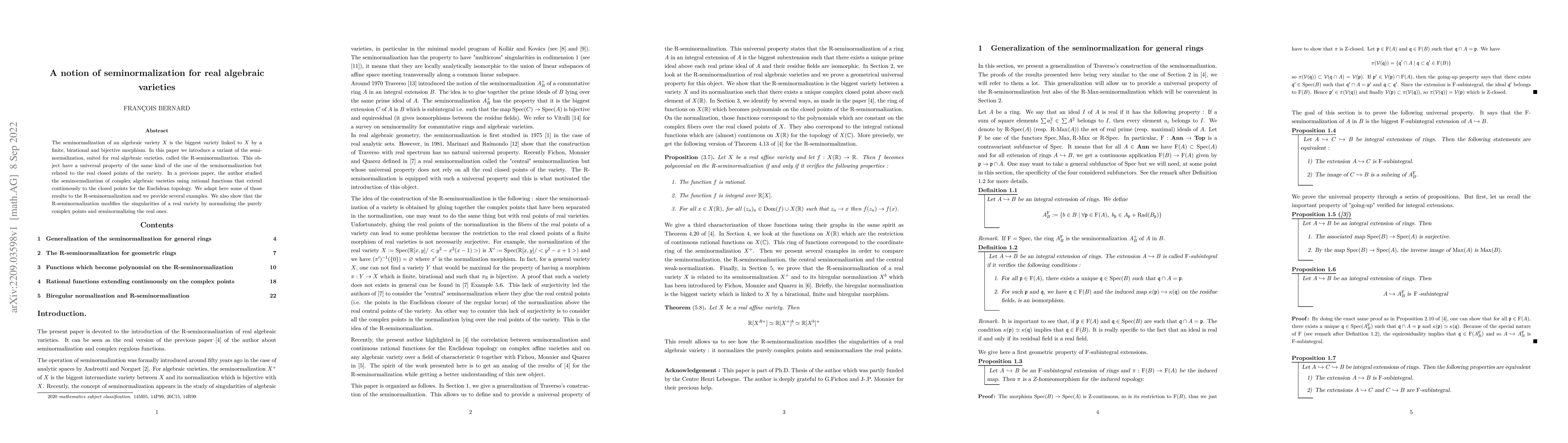This paper introduces the concept of R-seminormalization for real algebraic varieties, which extends the notion of seminormalization to the real context by focusing on real closed points. It adapts previous results on seminormalization for complex varieties and provides examples, showing that R-seminormalization normalizes purely complex singularities while seminormalizing real ones.