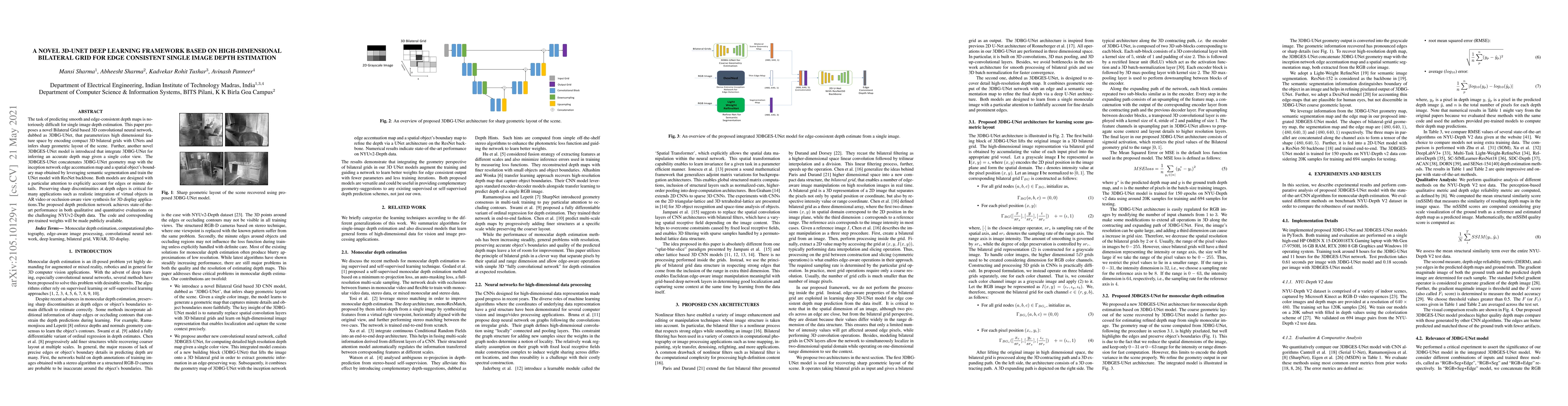 The task of predicting smooth and edge-consistent depth maps is notoriously difficult for single image depth estimation. This paper proposes a novel Bilateral Grid based 3D convolutional neural network, dubbed as 3DBG-UNet, that parameterizes high dimensional feature space by encoding compact 3D bilateral grids with UNets and infers sharp geometric layout of the scene. Further, another novel 3DBGES-UNet model is introduced that integrate 3DBG-UNet for inferring an accurate depth map given a single color view. The 3DBGES-UNet concatenates 3DBG-UNet geometry map with the inception network edge accentuation map and a spatial object's boundary map obtained by leveraging semantic segmentation and train the UNet model with ResNet backbone. Both models are designed with a particular attention to explicitly account for edges or minute details. Preserving sharp discontinuities at depth edges is critical for many applications such as realistic integration of virtual objects in AR video or occlusion-aware view synthesis for 3D display applications.The proposed depth prediction network achieves state-of-the-art performance in both qualitative and quantitative evaluations on the challenging NYUv2-Depth data. The code and corresponding pre-trained weights will be made publicly available.