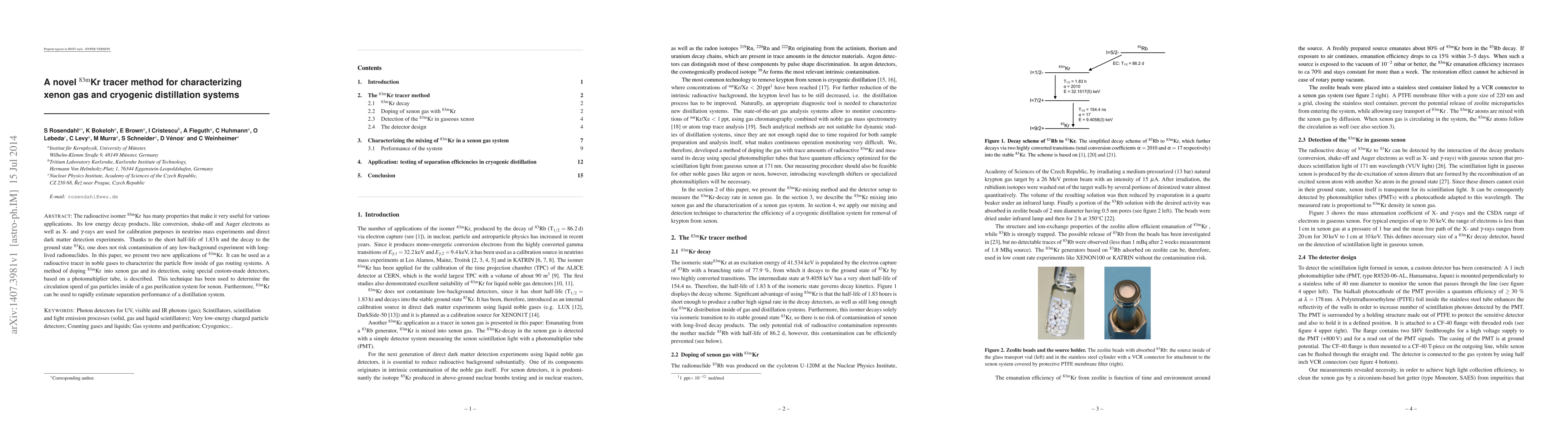 The radioactive isomer $^{83\mathrm{m}}$Kr has many properties that make it very useful for various applications. Its low energy decay products, like conversion, shake-off and Auger electrons as well as X- and $\gamma$-rays are used for calibration purposes in neutrino mass experiments and direct dark matter detection experiments. Thanks to the short half-life of 1.83 h and the decay to the ground state $^{83}$Kr, one does not risk contamination of any low-background experiment with long- lived radionuclides. In this paper, we present two new applications of $^{83\mathrm{m}}$Kr. It can be used as a radioactive tracer in noble gases to characterize the particle flow inside of gas routing systems. A method of doping $^{83\mathrm{m}}$Kr into xenon gas and its detection, using special custom-made detectors, based on a photomultiplier tube, is described. This technique has been used to determine the circulation speed of gas particles inside of a gas purification system for xenon. Furthermore, 83m Kr can be used to rapidly estimate separation performance of a distillation system.