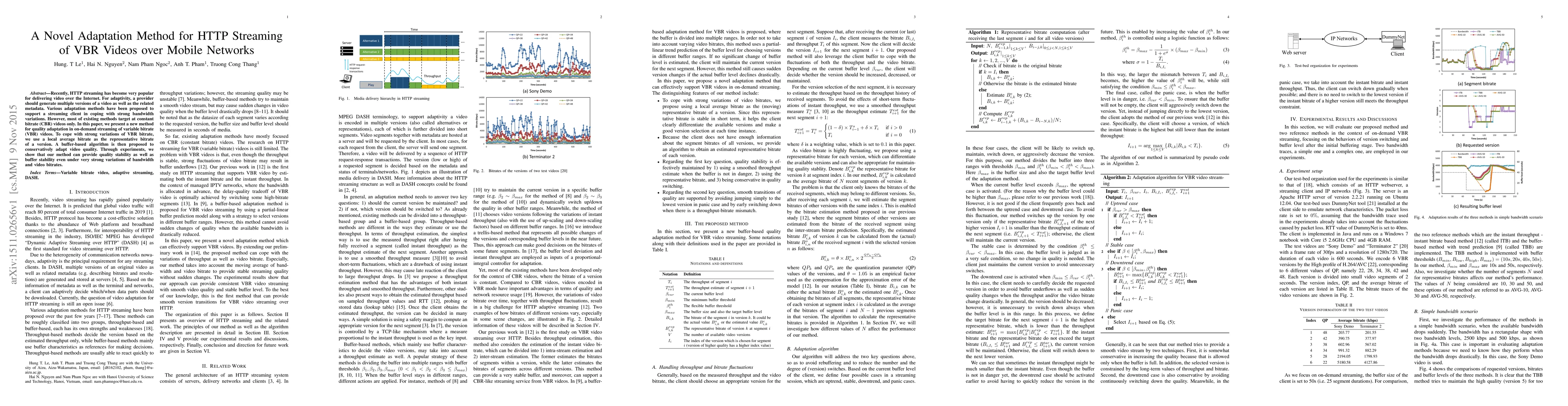 This paper introduces a new method for adaptive HTTP streaming of variable bitrate (VBR) videos over mobile networks, addressing the lack of existing methods for VBR videos. It employs a local average bitrate and a buffer-based algorithm to maintain quality and buffer stability despite significant bandwidth fluctuations.