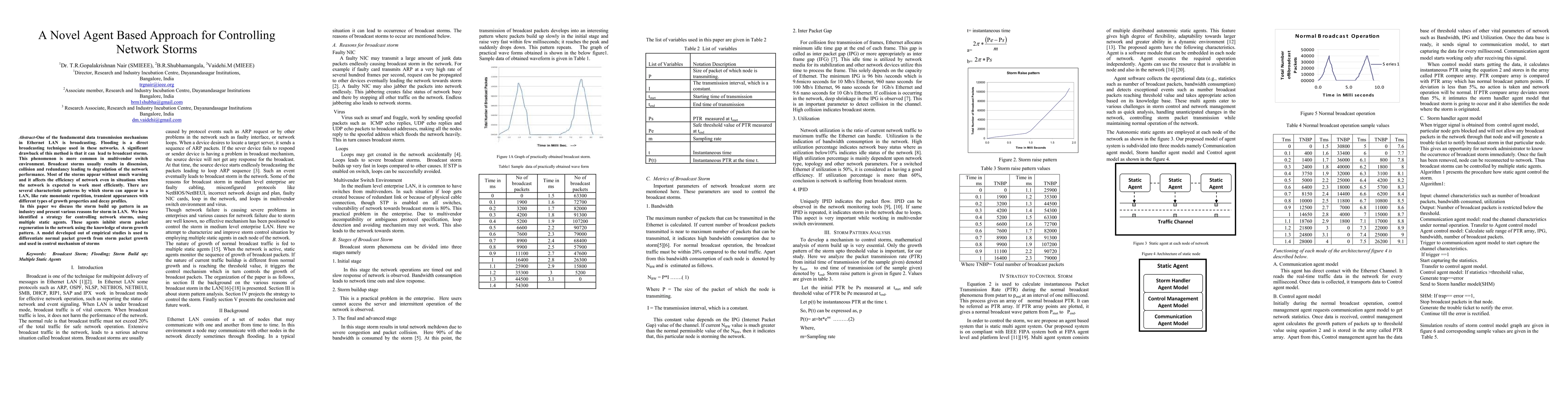 One of the fundamental data transmission mechanisms in Ethernet LAN is broadcasting. Flooding is a direct broadcasting technique used in these networks. A significant drawback of this method is that it can lead to broadcast storms. This phenomenon is more common in multivendor switch environment. Broadcast storms usually results in dissension, collision and redundancy leading to degradation of the network performance. Most of the storms appear without much warning and it affects the efficiency of network even in situations when the network is expected to work most efficiently. There are several characteristic patterns by which storm can appear in a LAN, like rate monotonic repetition, transient appearances with different types of growth properties and decay profiles. In this paper we discuss the storm build up pattern in an industry and present various reasons for storm in LAN. We have identified a strategy for controlling network storms, using multiple static agents. These agents inhibit storm packet regeneration in the network using the knowledge of storm growth pattern. A model developed out of empirical studies is used to differentiate normal packet growth from storm packet growth and used in control mechanism of storms.