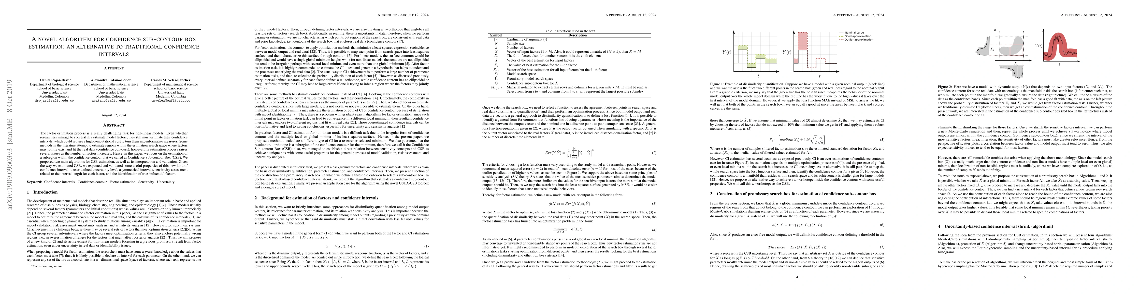 The factor estimation process is a really challenging task for non-linear models. Even whether researchers manage to successfully estimate model factors, they still must estimate their confidence intervals, which could require a high computational cost to turn them into informative measures. Some methods in the literature attempt to estimate regions within the estimation search space where factors may jointly exist and fit the real data (confidence contours), however, its estimation process raises several issues as the number of factors increases. Hence, in this paper, we focus on the estimation of a subregion within the confidence contour that we called as Confidence Subcontour Box (CSB). We proposed two main algorithms for CSB estimation, as well as its interpretation and validation. Given the way we estimated CSB, we expected and validated some useful properties of this new kind of confidence interval: a user-defined uncertainty level, asymmetrical intervals, sensitivity assessment related to the interval length for each factor, and the identification of true-influential factors.