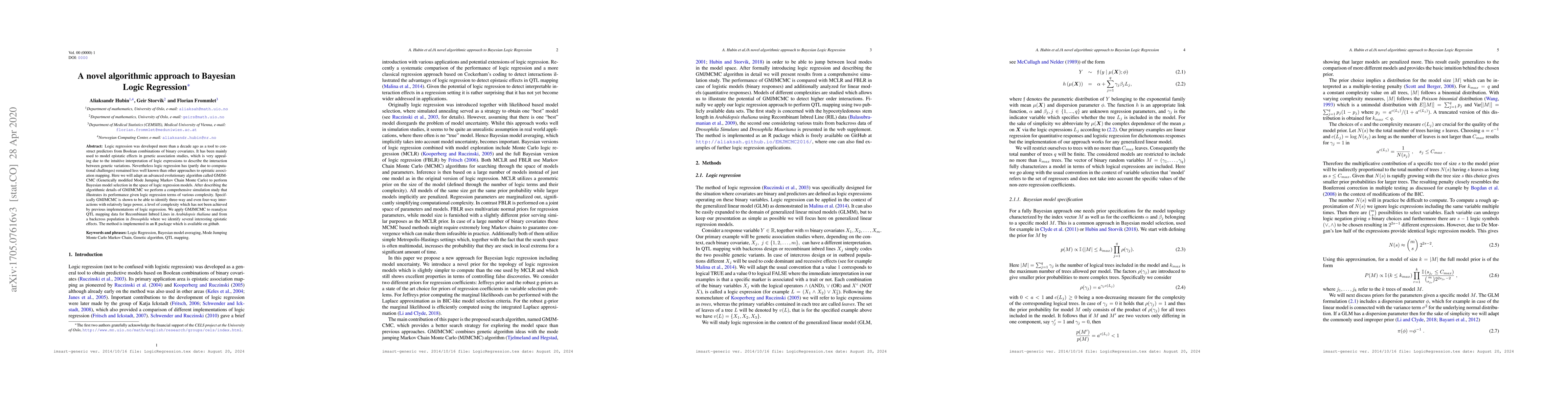 This paper introduces a novel algorithm, GMJMCMC, to perform Bayesian model selection in logic regression for identifying complex genetic interactions. It successfully detects high-order interactions, like three- and four-way, in simulations and real genetic data from u2018Arabidopsis thaliana'u2019 and u2018Drosophilau2019, outperforming previous logic regression implementations.