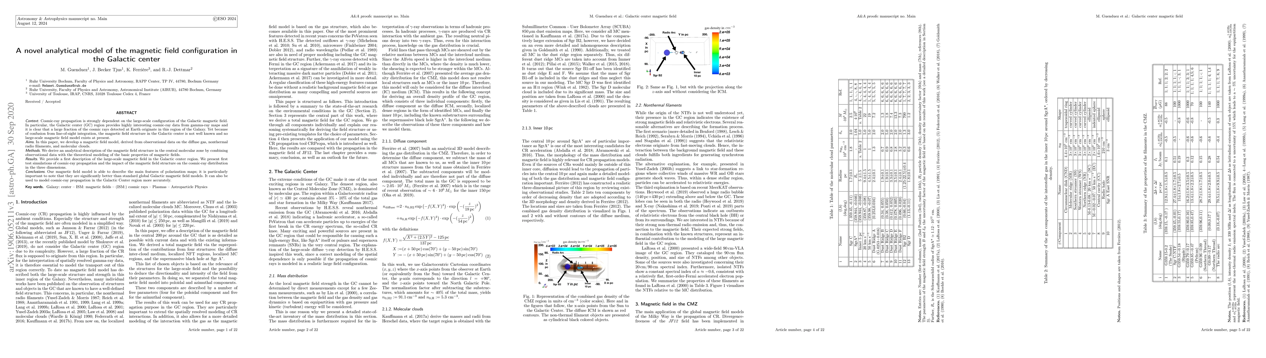This paper develops a novel analytical model of the Galactic Center's magnetic field configuration using observational data from diffuse gas, nonthermal radio filaments, and molecular clouds. The model provides a detailed description of the large-scale magnetic field and improves upon standard global Galactic magnetic field models, enabling better simulations of cosmic-ray propagation in the region.
