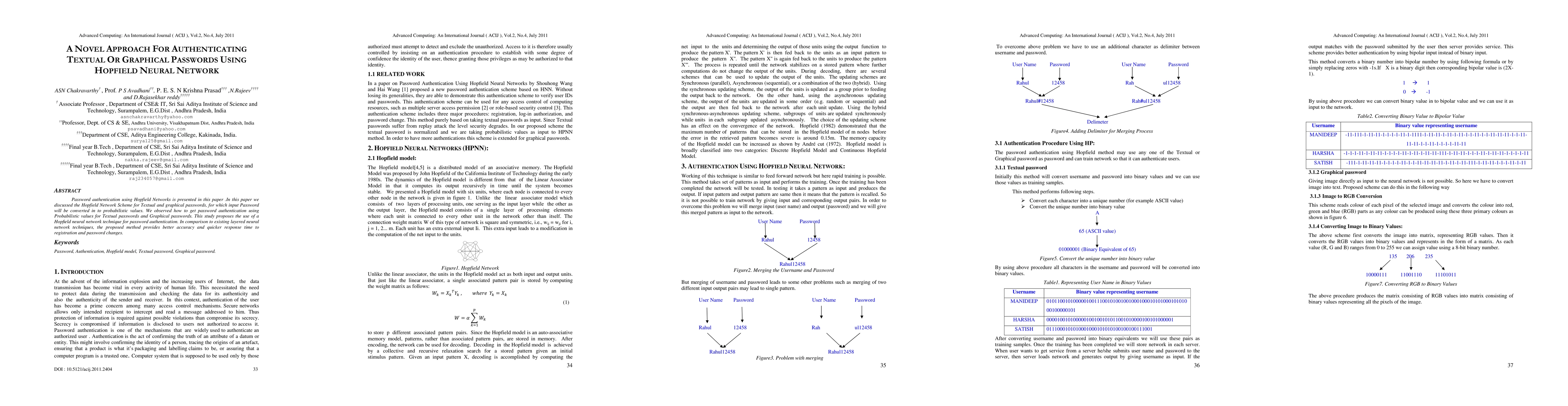This paper introduces a novel Hopfield Neural Network approach for authenticating textual and graphical passwords by converting inputs into probabilistic values, achieving better accuracy and faster response times compared to traditional layered neural networks.
