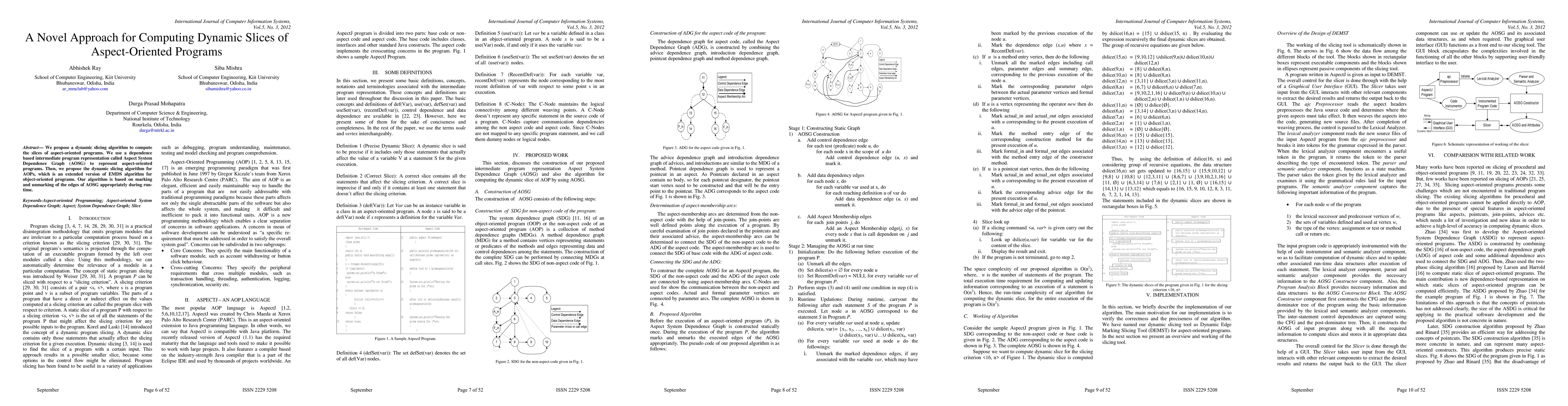 This paper introduces a novel dynamic slicing algorithm for aspect-oriented programs (AOPs) using an Aspect System Dependence Graph (AOSG) to represent dependencies. The proposed algorithm extends the EMDS algorithm for object-oriented programs and operates by marking and unmarking AOSG edges during runtime.