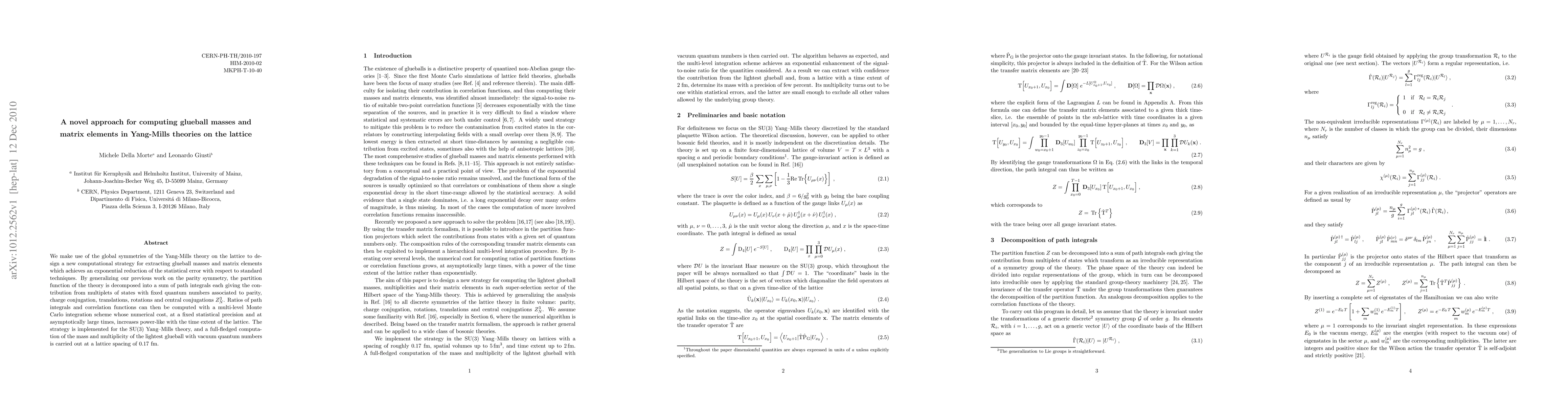 This paper presents a novel computational method for determining glueball masses and matrix elements in lattice Yang-Mills theories, leveraging global symmetries to achieve exponential reductions in statistical error. The new approach decomposes the partition function into contributions from multiplets of states, enabling efficient multi-level Monte Carlo integration.