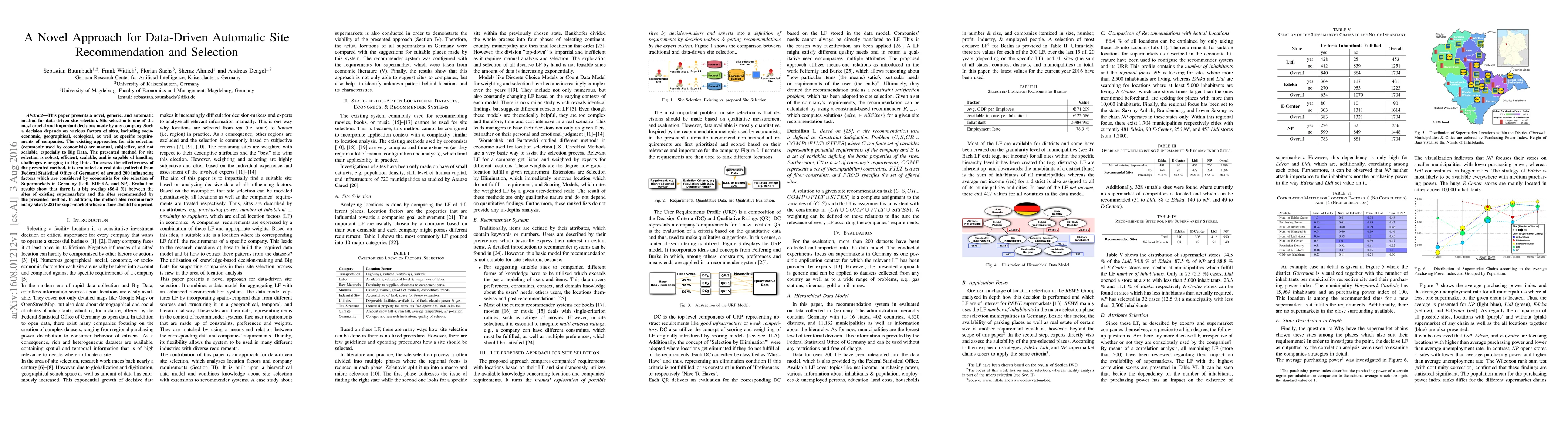 This research is important as it presents a novel, automated approach to site selection that integrates Big Data, eliminating the need for manual analysis and expert knowledge, while handling extensive site information.
