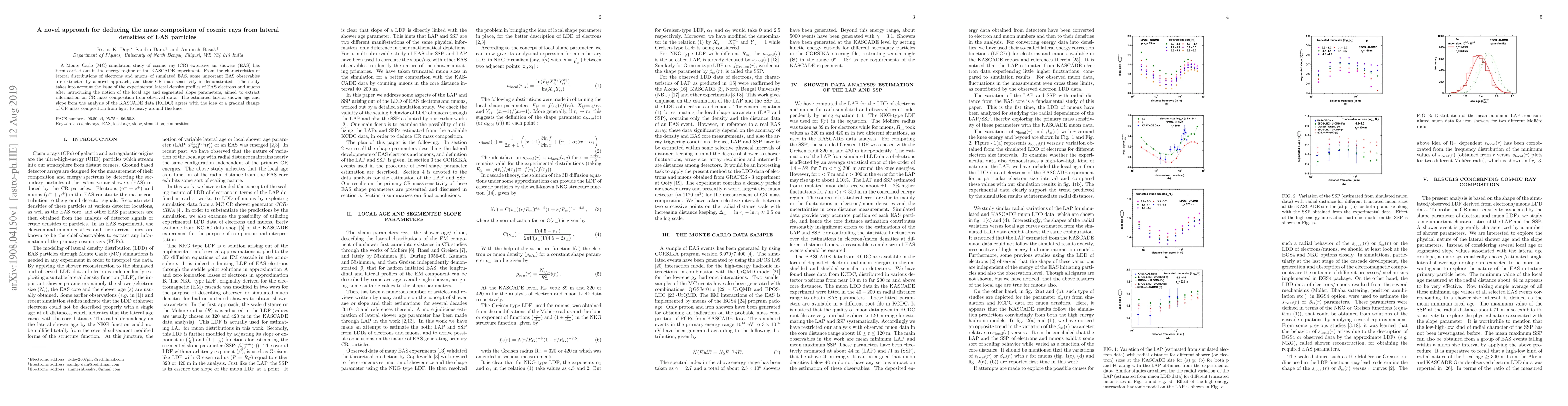This paper presents a novel Monte Carlo simulation method to deduce cosmic ray mass composition using lateral densities of EAS particles, introducing local age and segmented slope parameters. The study aligns KASCADE experimental data with a gradual shift in cosmic ray mass composition from light to heavy around the knee energy region.