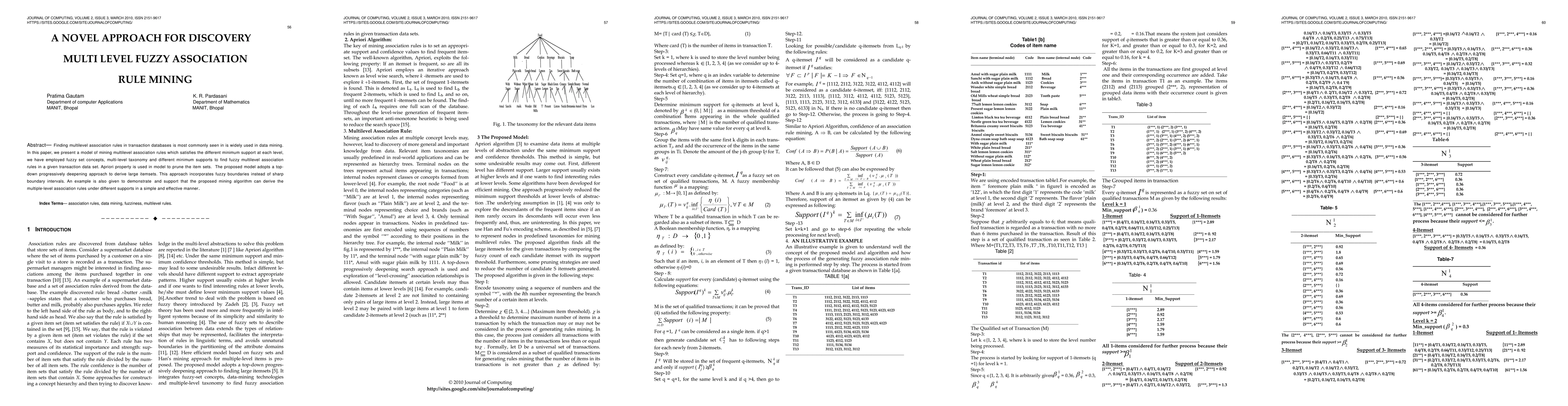 Finding multilevel association rules in transaction databases is most commonly seen in is widely used in data mining. In this paper, we present a model of mining multilevel association rules which satisfies the different minimum support at each level, we have employed fuzzy set concepts, multi-level taxonomy and different minimum supports to find fuzzy multilevel association rules in a given transaction data set. Apriori property is used in model to prune the item sets. The proposed model adopts a topdown progressively deepening approach to derive large itemsets. This approach incorporates fuzzy boundaries instead of sharp boundary intervals. An example is also given to demonstrate and support that the proposed mining algorithm can derive the multiple-level association rules under different supports in a simple and effective manner.