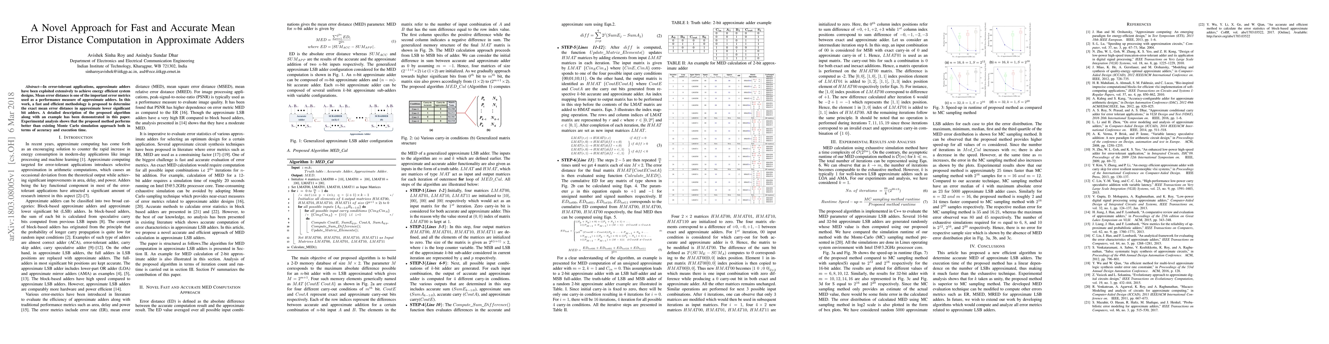 This paper proposes a novel, fast, and accurate methodology for computing the mean error distance in approximate lower significant bit adders, outperforming existing Monte Carlo simulation methods in both accuracy and execution time. The proposed algorithm is demonstrated with a detailed example and experimental analysis.