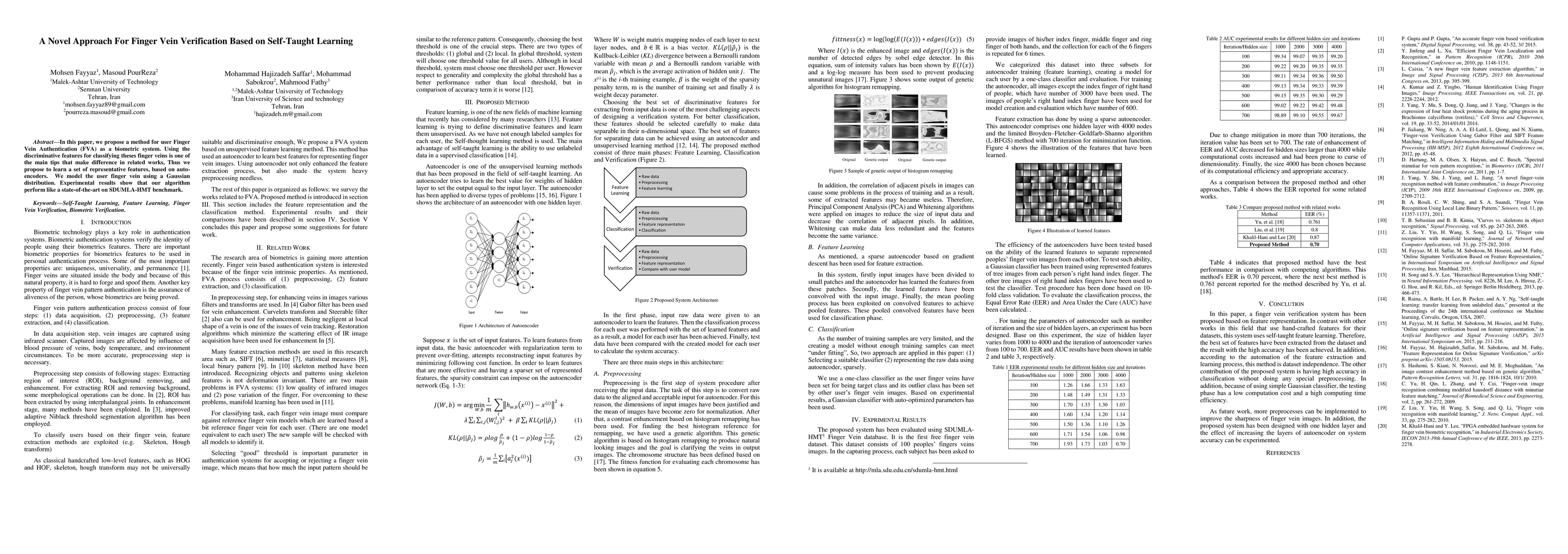 This paper introduces a novel finger vein authentication method using self-taught learning with autoencoders to extract discriminative features. The proposed approach models finger veins with a Gaussian distribution and achieves state-of-the-art performance on the SDUMLA-HMT benchmark.