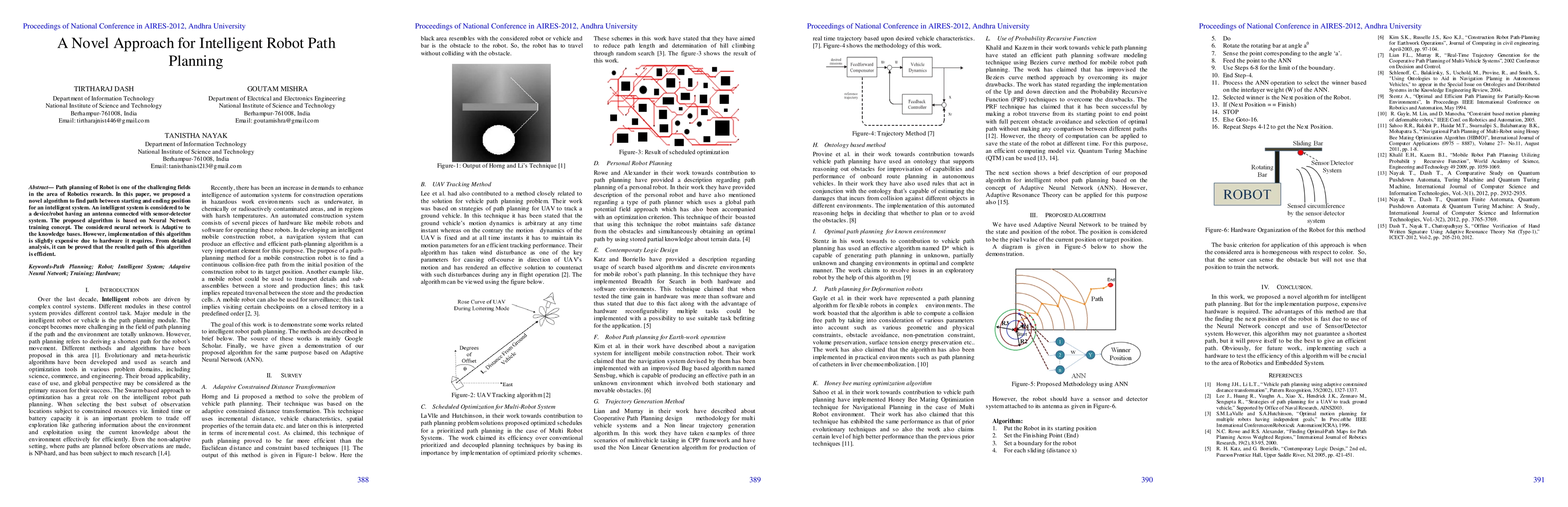 Path planning of Robot is one of the challenging fields in the area of Robotics research. In this paper, we proposed a novel algorithm to find path between starting and ending position for an intelligent system. An intelligent system is considered to be a device/robot having an antenna connected with sensor-detector system. The proposed algorithm is based on Neural Network training concept. The considered neural network is Adapti ve to the knowledge bases. However, implementation of this algorithm is slightly expensive due to hardware it requires. From detailed analysis, it can be proved that the resulted path of this algorithm is efficient.