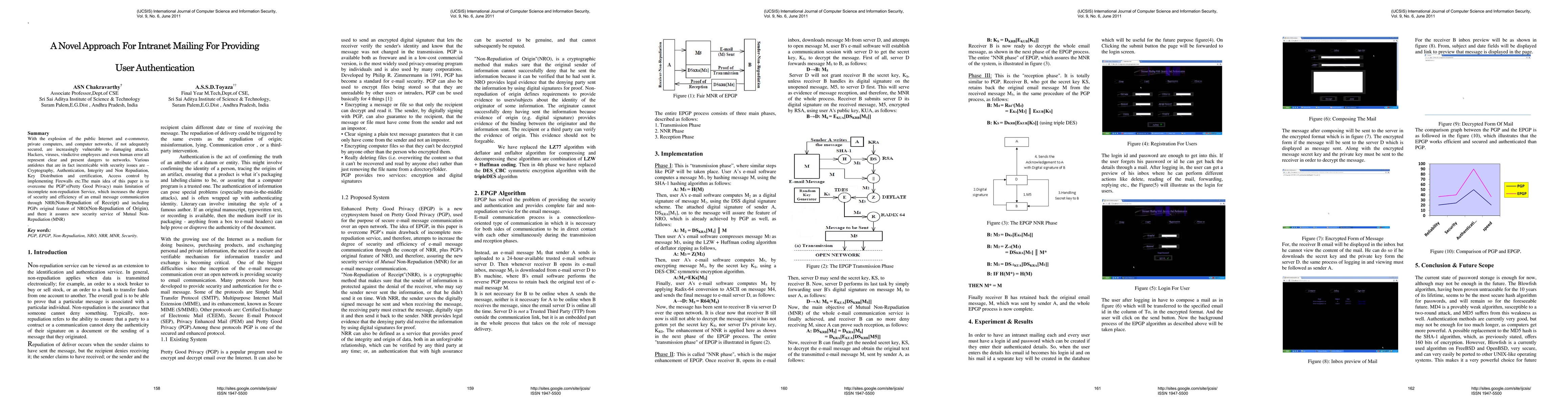 With the explosion of the public Internet and e-commerce, private computers, and computer networks, if not adequately secured, are increasingly vulnerable to damaging attacks. Hackers, viruses, vindictive employees and even human error all represent clear and present dangers to networks. Various antidotes that are in fact inextricable with security issues are - Cryptography, Authentication, Integrity and Non Repudiation, Key Distribution and certification, Access control by implementing Firewalls etc.The main idea of this paper is to overcome the PGP's(Pretty Good Privacy) main limitation of incomplete non-repudiation Service, which increases the degree of security and efficiency of an email message communication through NRR(Non-Repudiation of Receipt) and including PGPs original feature of NRO(Non-Repudiation of Origin), and there it assures new security service of Mutual Non-Repudiation (MNR) .
