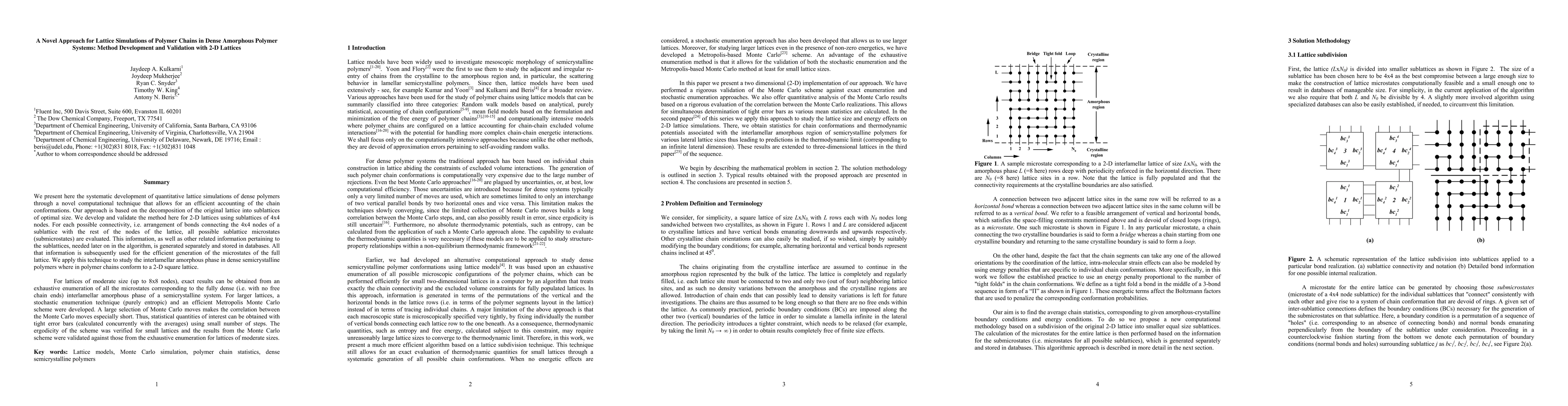 We present here the systematic development of quantitative lattice simulations of dense polymers through a novel computational technique that allows for an efficient accounting of the chain conformations. Our approach is based on the decomposition of the original lattice into sublattices of optimal size. We develop and validate the method here for 2-D lattices using sublattices of 4x4 nodes. For each possible connectivity, i.e. arrangement of bonds connecting the 4x4 nodes of a sublattice with the rest of the nodes of the lattice, all possible sublattice microstates (submicrostates) are evaluated. We apply this technique to study the interlamellar amorphous phase in dense semicrystalline polymers where in polymer chains conform to a 2-D square lattice. For lattices of moderate size (up to 8x8 nodes), exact results can be obtained from an exhaustive enumeration of all the microstates corresponding to the fully dense (i.e. with no free chain ends) interlamellar amorphous phase of a semicrystalline system. For larger lattices, a stochastic enumeration technique (purely entropic) and an efficient Metropolis Monte Carlo scheme were developed. A large selection of Monte Carlo moves makes the correlation between the Monte Carlo moves especially short. Thus, statistical quantities of interest can be obtained with tight error bars (calculated concurrently with the averages) using small number of steps.