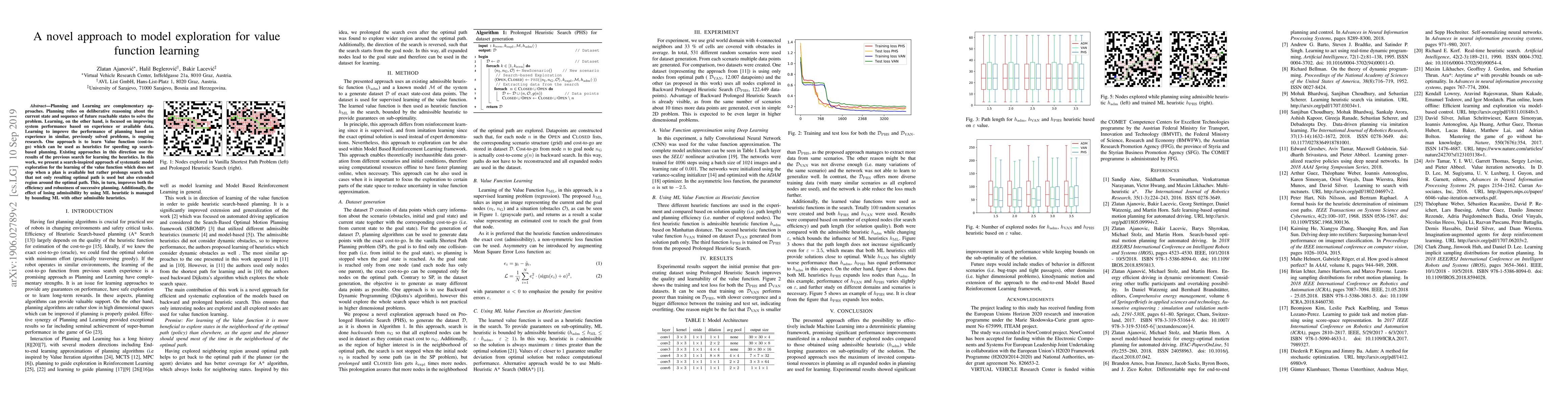 Planning and Learning are complementary approaches. Planning relies on deliberative reasoning about the current state and sequence of future reachable states to solve the problem. Learning, on the other hand, is focused on improving system performance based on experience or available data. Learning to improve the performance of planning based on experience in similar, previously solved problems, is ongoing research. One approach is to learn Value function (cost-to-go) which can be used as heuristics for speeding up search-based planning. Existing approaches in this direction use the results of the previous search for learning the heuristics. In this work, we present a search-inspired approach of systematic model exploration for the learning of the value function which does not stop when a plan is available but rather prolongs search such that not only resulting optimal path is used but also extended region around the optimal path. This, in turn, improves both the efficiency and robustness of successive planning. Additionally, the effect of losing admissibility by using ML heuristic is managed by bounding ML with other admissible heuristics.