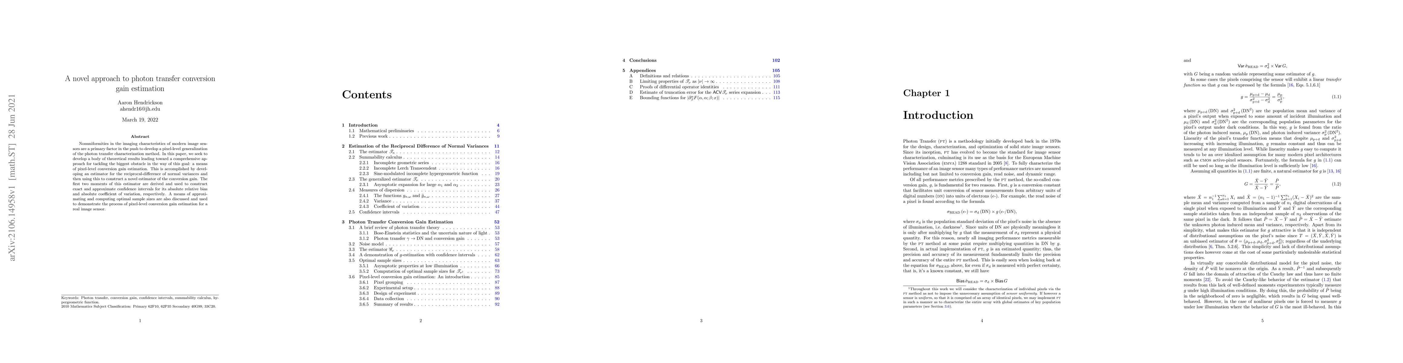 Nonuniformities in the imaging characteristics of modern image sensors are a primary factor in the push to develop a pixel-level generalization of the photon transfer characterization method. In this paper, we seek to develop a body of theoretical results leading toward a comprehensive approach for tackling the biggest obstacle in the way of this goal: a means of pixel-level conversion gain estimation. This is accomplished by developing an estimator for the reciprocal-difference of normal variances and then using this to construct a novel estimator of the conversion gain. The first two moments of this estimator are derived and used to construct exact and approximate confidence intervals for its absolute relative bias and absolute coefficient of variation, respectively. A means of approximating and computing optimal sample sizes are also discussed and used to demonstrate the process of pixel-level conversion gain estimation for a real image sensor.