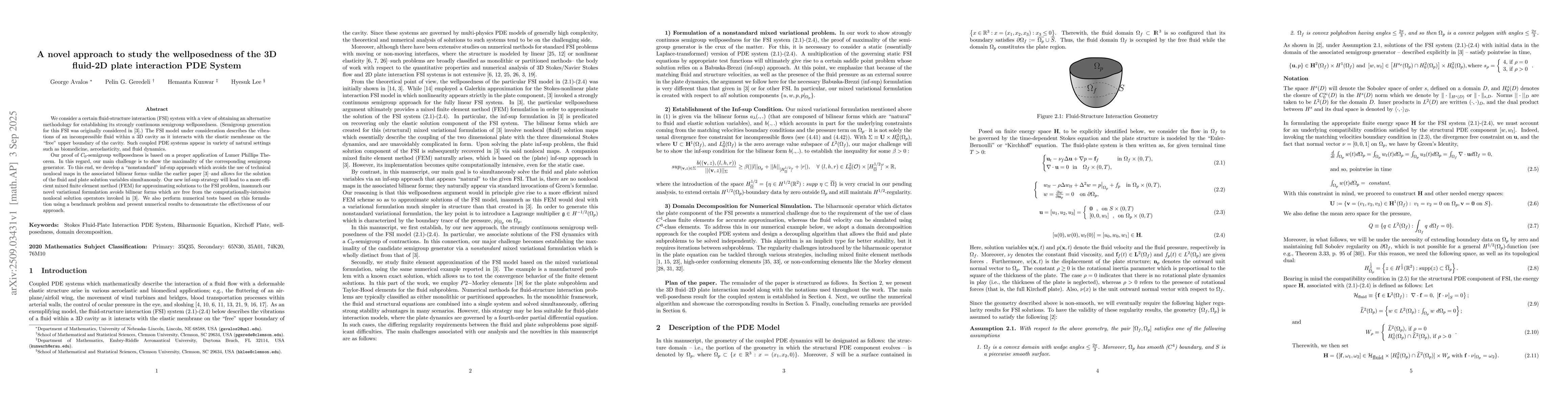 We consider a certain fluid-structure interaction (FSI) system with a view of obtaining an alternative methodology for establishing its strongly continuous semigroup wellposedness. (Semigroup generation for this FSI was originally considered in Avalos-Clark (2014).) The FSI model under consideration describes the vibrations of an incompressible fluid within a 3D cavity as it interacts with the elastic membrane on the ``free" upper boundary of the cavity. Such coupled PDE systems appear in variety of natural settings such as biomedicine, aeroelasticity, and fluid dynamics. Our proof of $C_0$-semigroup wellposedness is based on a proper application of Lumer Phillips Theorem. In this regard, our main challenge is to show the maximality of the corresponding semigroup generator. To this end, we develop a ``nonstandard" inf-sup approach which avoids the use of technical nonlocal maps in the associated bilinear forms--unlike the earlier paper Avalos-Clark (2014)--and allows for the solution of the fluid and plate solution variables simultanously. Our new inf-sup strategy will lead to a more efficient mixed finite element method (FEM) for approximating solutions to the FSI problem, inasmuch our novel variational formulation avoids bilinear forms which are free from the computationally-intensive nonlocal solution operators invoked in Avalos-Clark (2014). We also perform numerical tests based on this formulation using a benchmark problem and present numerical results to demonstrate the effectiveness of our approach.