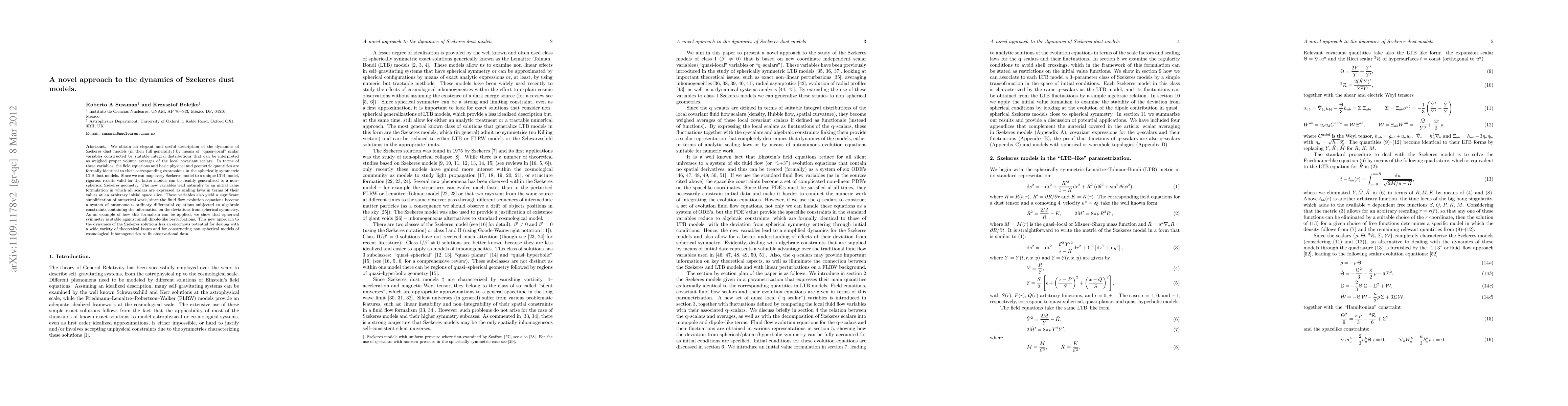 This paper introduces a novel quasi-local scalar variable framework to describe the dynamics of Szekeres dust models, simplifying their numerical analysis and allowing for the generalization of spherically symmetric LTB model results to non-spherical Szekeres geometries. The approach also demonstrates the stability of spherical symmetry against small perturbations.