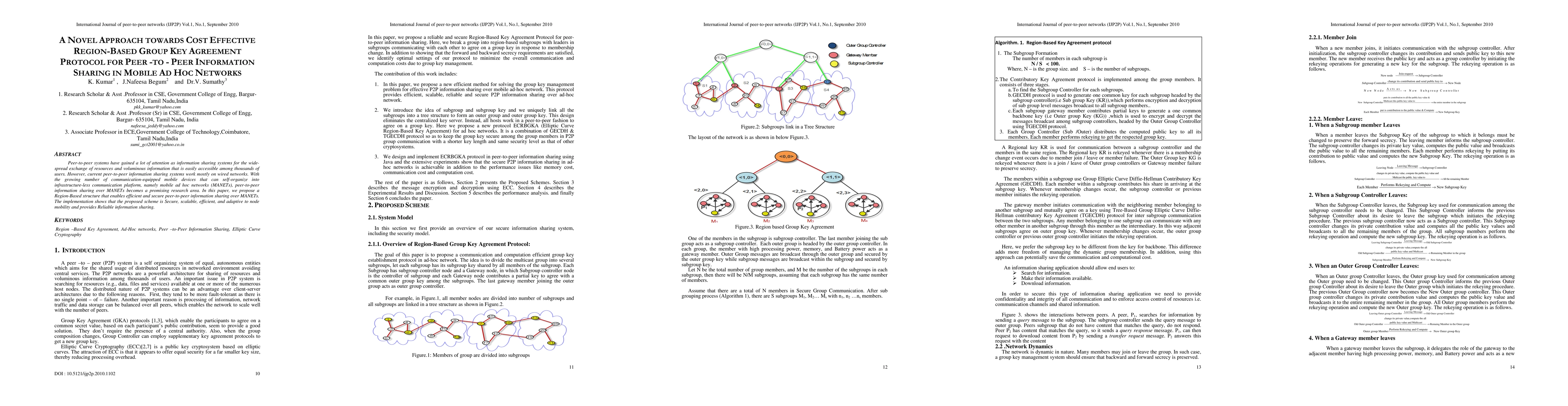This paper proposes a novel, cost-effective region-based group key agreement protocol for secure peer-to-peer information sharing in mobile ad hoc networks (MANETs). The proposed scheme is shown to be secure, scalable, efficient, and adaptive to node mobility, ensuring reliable information sharing.