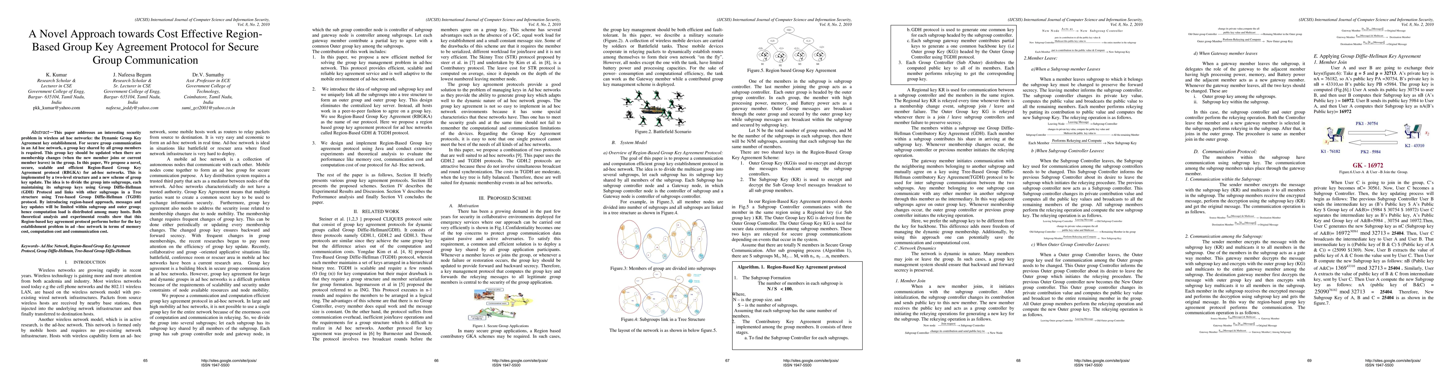 This paper proposes a novel, cost-effective Region-Based Group Key Agreement (RBGKA) protocol for secure communication in wireless ad hoc networks, utilizing a two-level structure to manage group key updates efficiently and distribute computational load. The protocol shows improved performance in terms of memory, computation, and communication costs.
