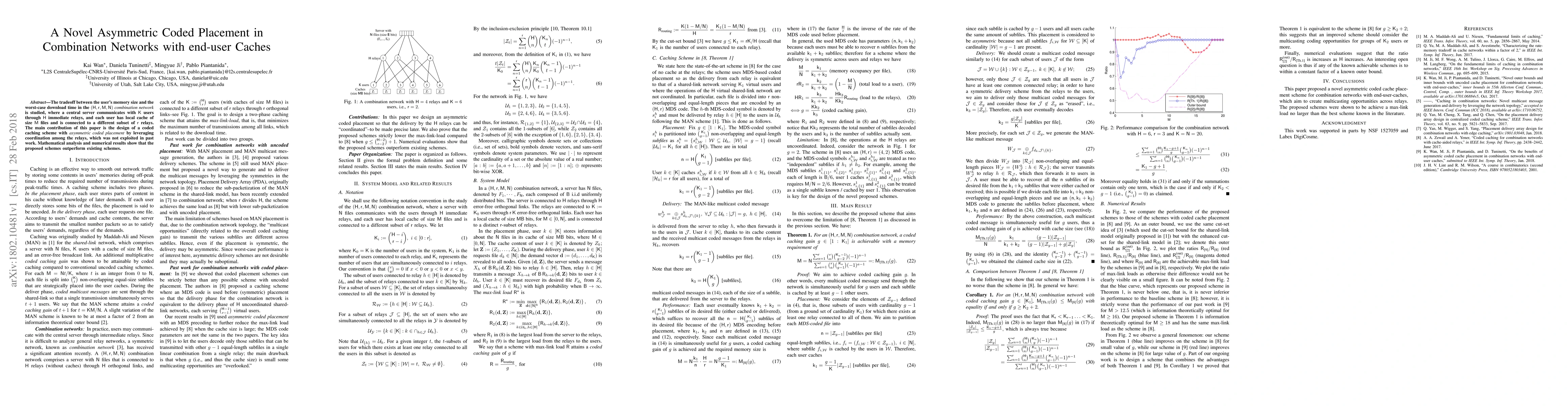 This paper proposes a novel asymmetric coded placement strategy for combination networks with end-user caches, optimizing the tradeoff between user memory size and download time. The scheme leverages relay coordination, outperforming existing methods as demonstrated by mathematical analysis and numerical results.