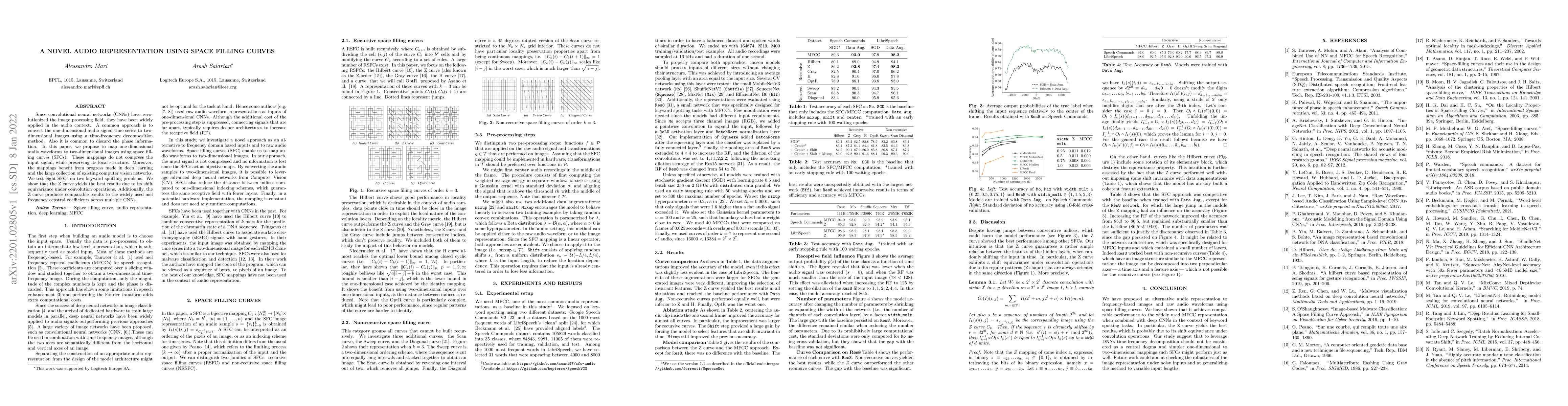 This paper proposes using space filling curves (SFCs) to map one-dimensional audio waveforms to two-dimensional images, preserving local structure without compressing the signal. The Z curve, in particular, shows superior performance in keyword spotting tasks, comparable to mel frequency cepstral coefficients, leveraging advancements in deep learning and computer vision networks.