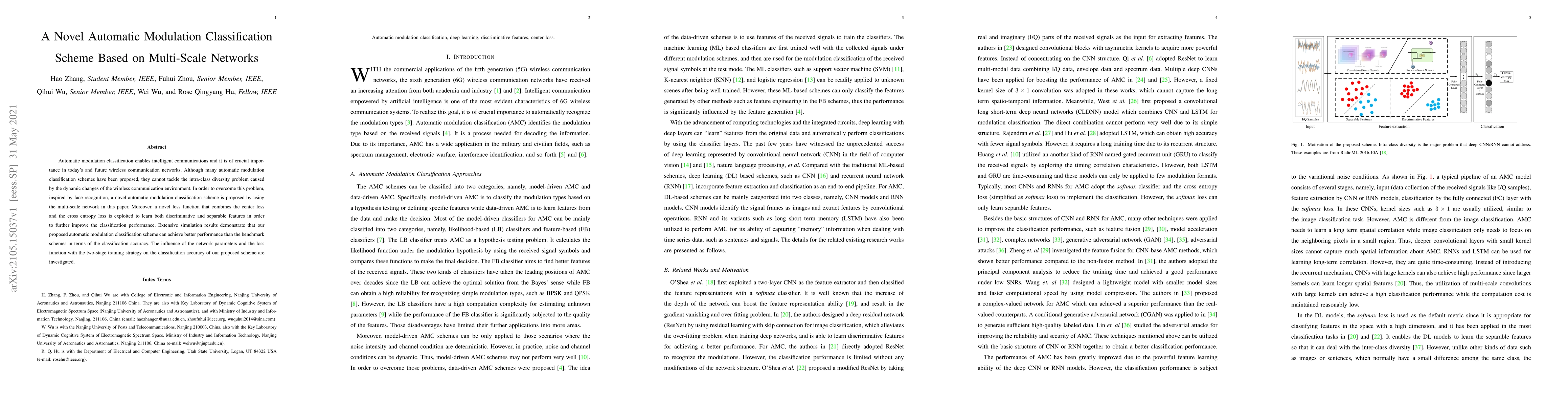 This paper proposes a novel automatic modulation classification scheme using multi-scale networks, inspired by face recognition techniques, to address the intra-class diversity issue in dynamic wireless environments. It introduces a hybrid loss function combining center loss and cross entropy loss to enhance feature discrimination and separability, achieving superior classification accuracy compared to existing methods.