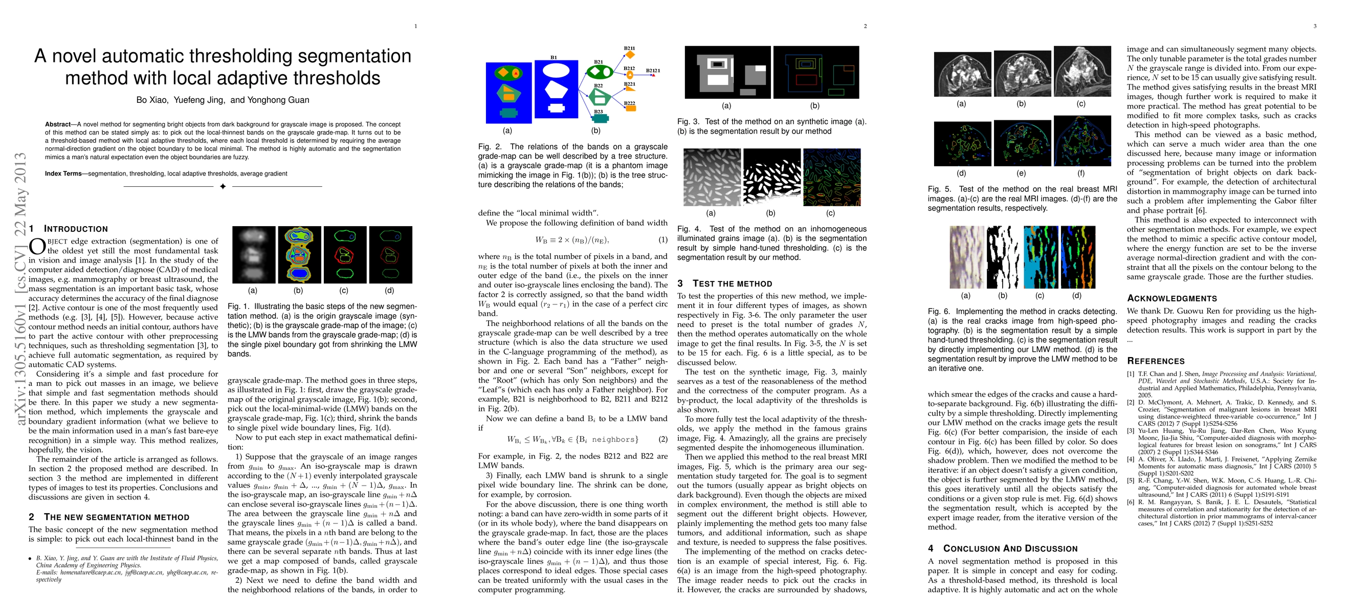 A novel method for segmenting bright objects from dark background for grayscale image is proposed. The concept of this method can be stated simply as: to pick out the local-thinnest bands on the grayscale grade-map. It turns out to be a threshold-based method with local adaptive thresholds, where each local threshold is determined by requiring the average normal-direction gradient on the object boundary to be local minimal. The method is highly automatic and the segmentation mimics a man's natural expectation even the object boundaries are fuzzy.