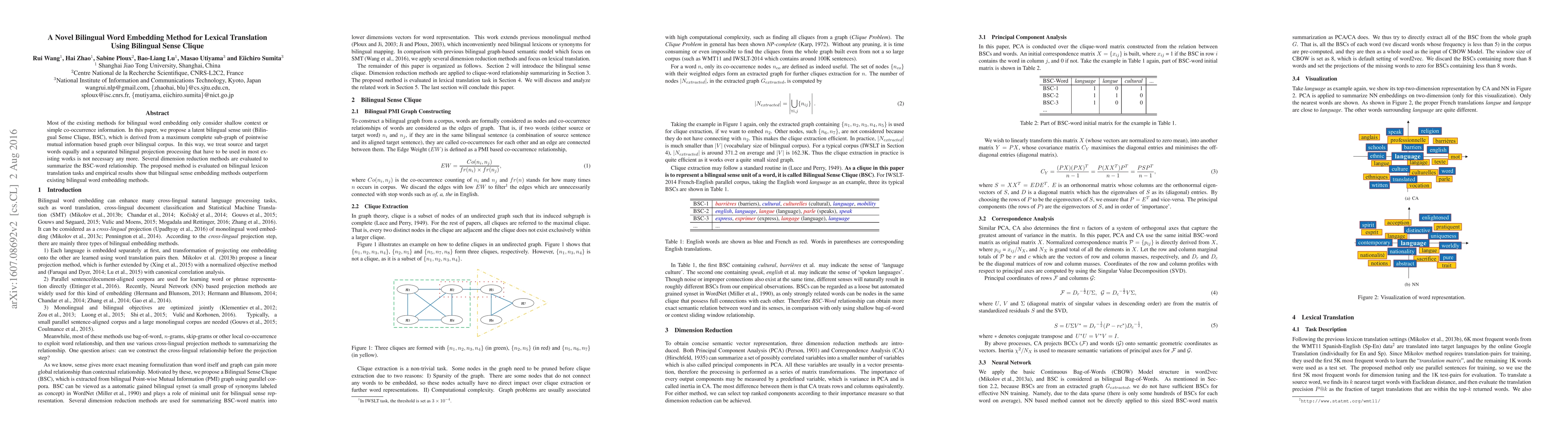 This paper proposes a novel method for bilingual word embedding using a latent Bilingual Sense Clique (BSC) derived from a maximum complete sub-graph of pointwise mutual information. The method outperforms existing techniques by treating source and target words equally without requiring separate bilingual projection processing, as demonstrated through improved performance on bilingual lexicon translation tasks.