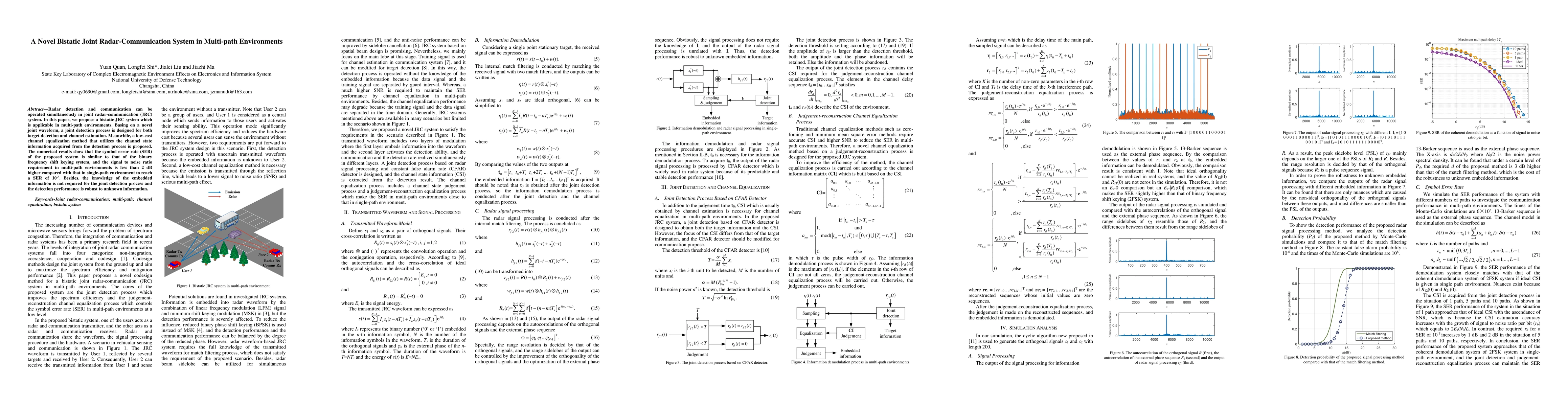 This paper proposes a bistatic joint radar-communication system for multi-path environments, utilizing a novel joint waveform for simultaneous target detection and channel estimation. The system achieves robust performance without requiring embedded information, and demonstrates comparable symbol error rates to binary frequency shift keying systems.