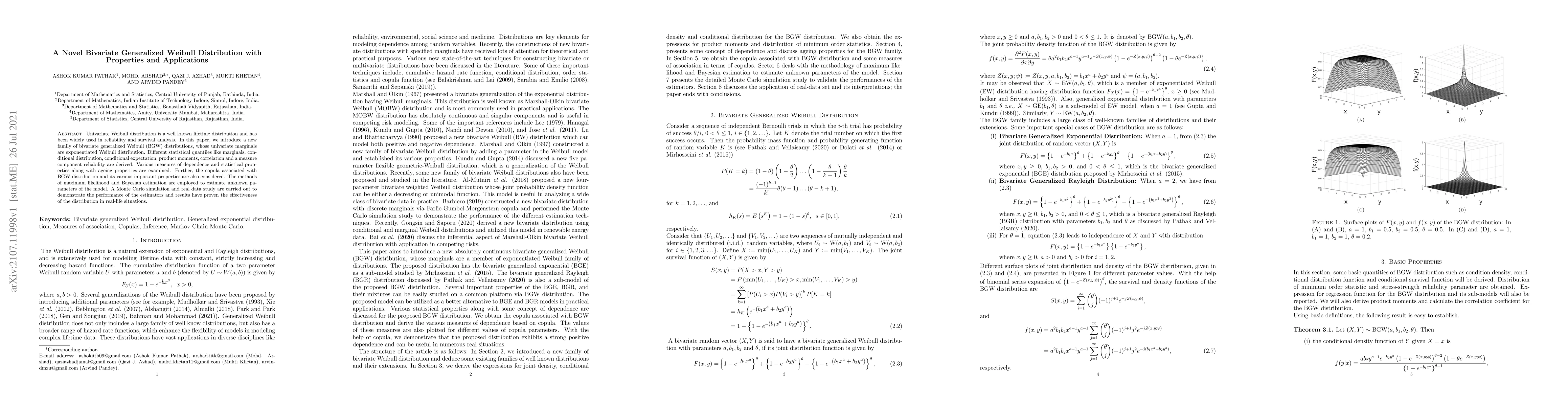 Univariate Weibull distribution is a well-known lifetime distribution and has been widely used in reliability and survival analysis. In this paper, we introduce a new family of bivariate generalized Weibull (BGW) distributions, whose univariate marginals are exponentiated Weibull distribution. Different statistical quantiles like marginals, conditional distribution, conditional expectation, product moments, correlation and a measure component reliability are derived. Various measures of dependence and statistical properties along with ageing properties are examined. Further, the copula associated with BGW distribution and its various important properties are also considered. The methods of maximum likelihood and Bayesian estimation are employed to estimate unknown parameters of the model. A Monte Carlo simulation and real data study are carried out to demonstrate the performance of the estimators and results have proven the effectiveness of the distribution in real-life situations