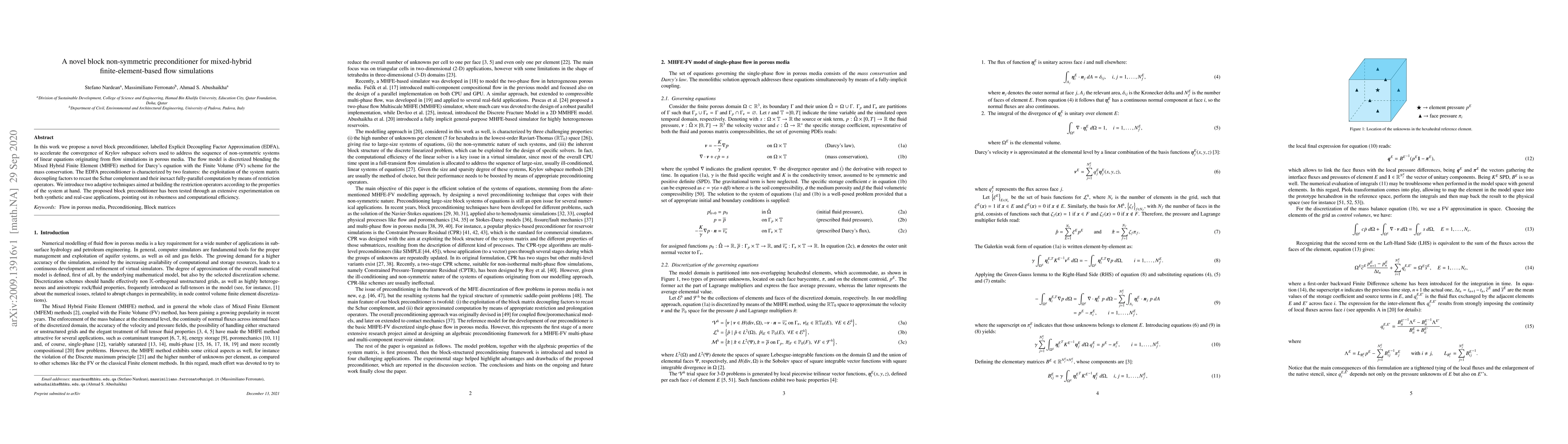Researchers proposed a novel block preconditioner called EDFA to accelerate convergence in flow simulations using Krylov subspace solvers. The new method shows robustness and computational efficiency in both synthetic and real-case applications.