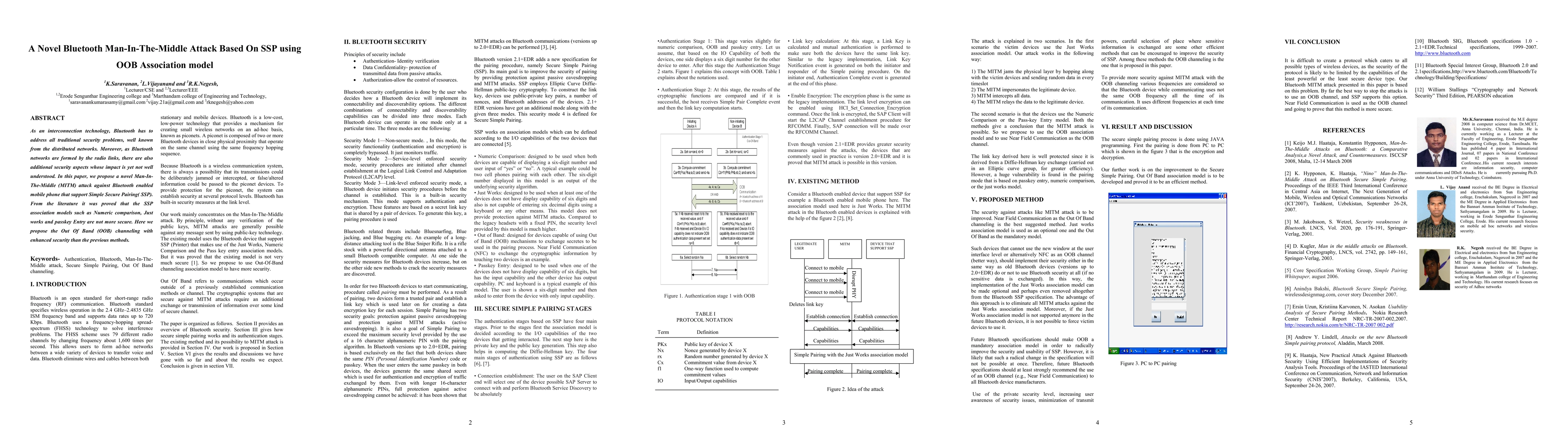This paper introduces a novel Man-In-The-Middle (MITM) attack on Bluetooth devices using Simple Secure Pairing (SSP) that exploits the Out Of Band (OOB) association model for enhanced security. It highlights vulnerabilities in existing SSP association models like Numeric comparison, Just works, and passkey Entry.